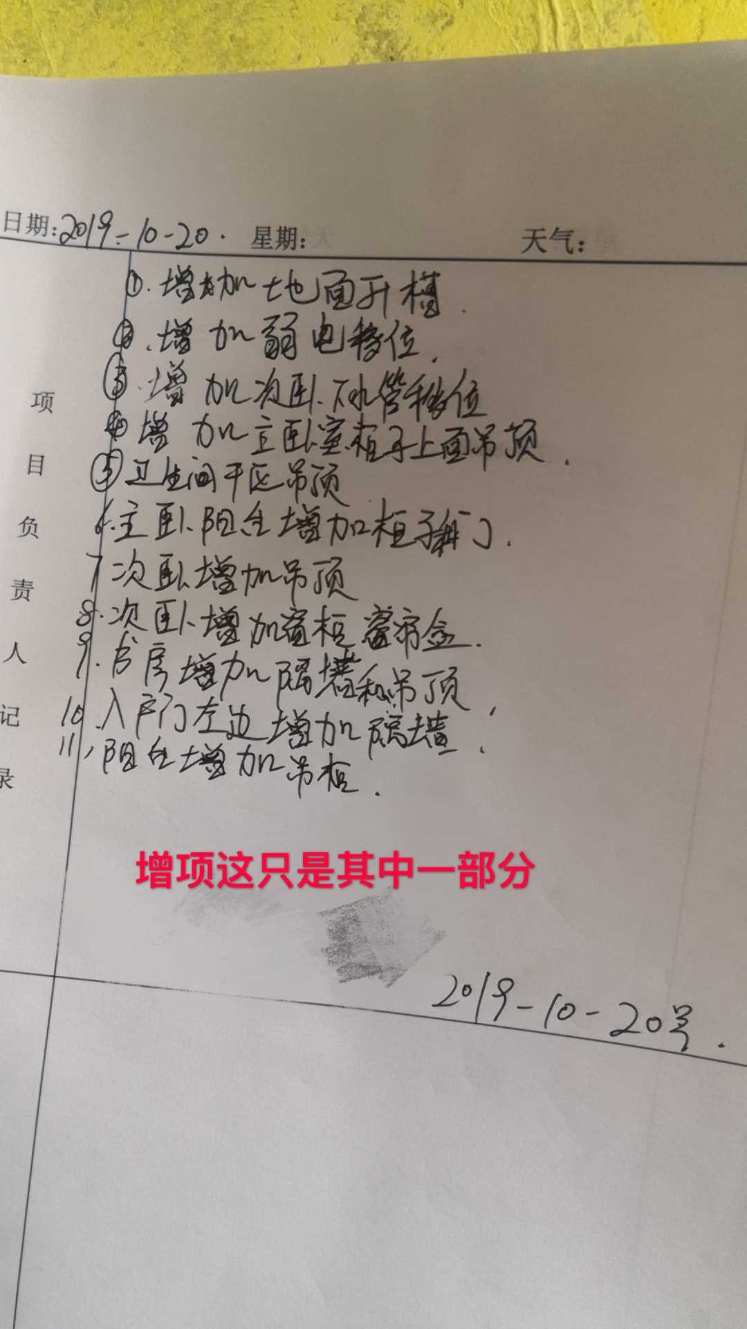 1)12月10号找他们协商,莫名被告知增项又来个马桶移位500块,之前从未有人跟我提及过这个项目,动不动就500块,简直抢钱