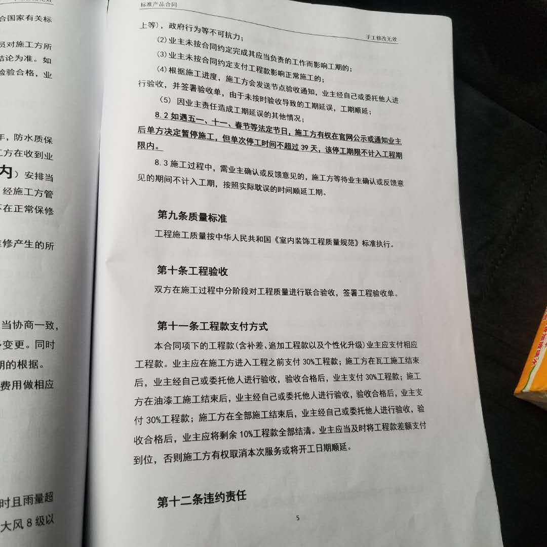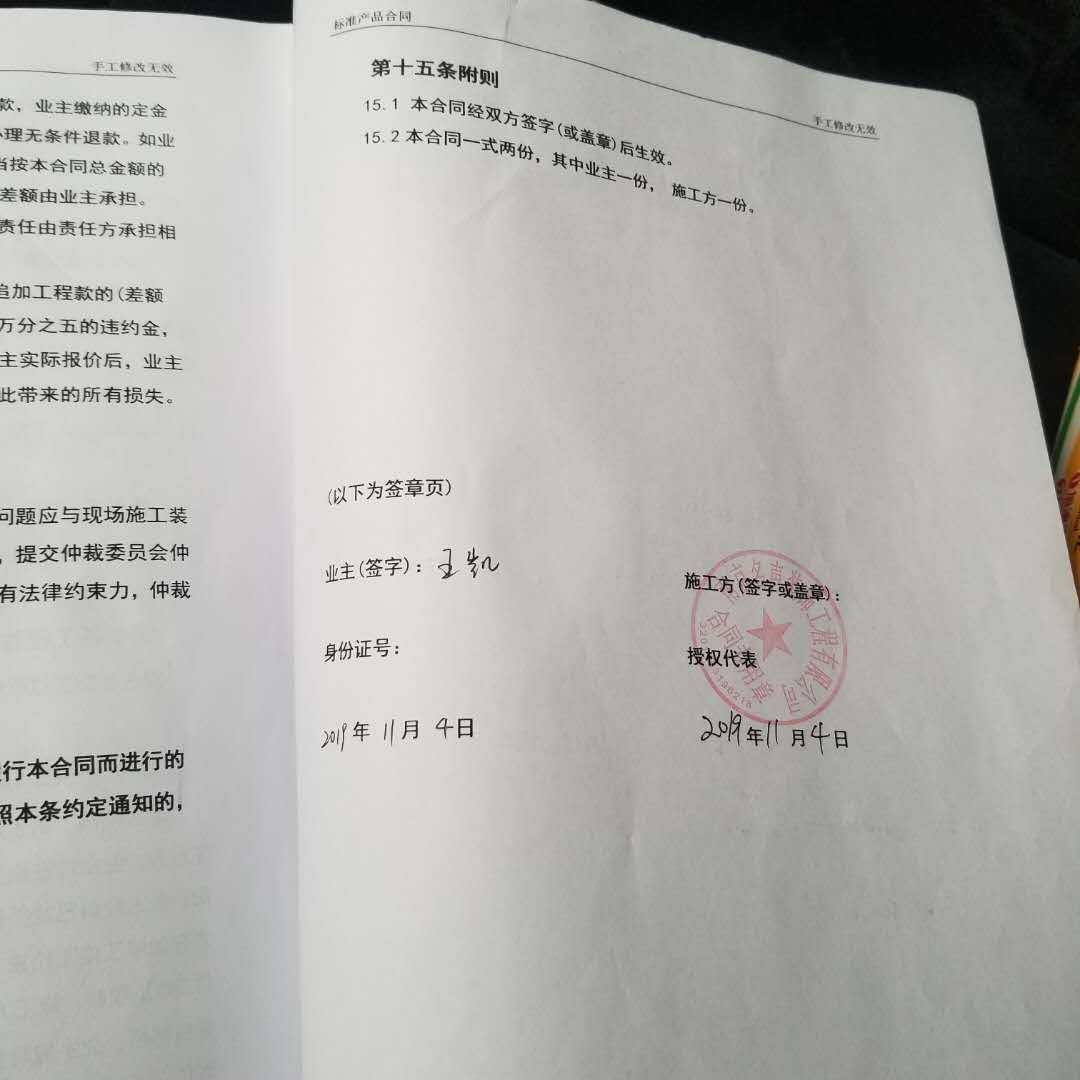19.11月与南京名声装饰工程有限公司签订合同一个柜子和榻榻米, 并支付了订金和大部分款项共1万元,合同上承诺兔宝宝板材 , 周末安装 ,合同约定12月4日交付 。?