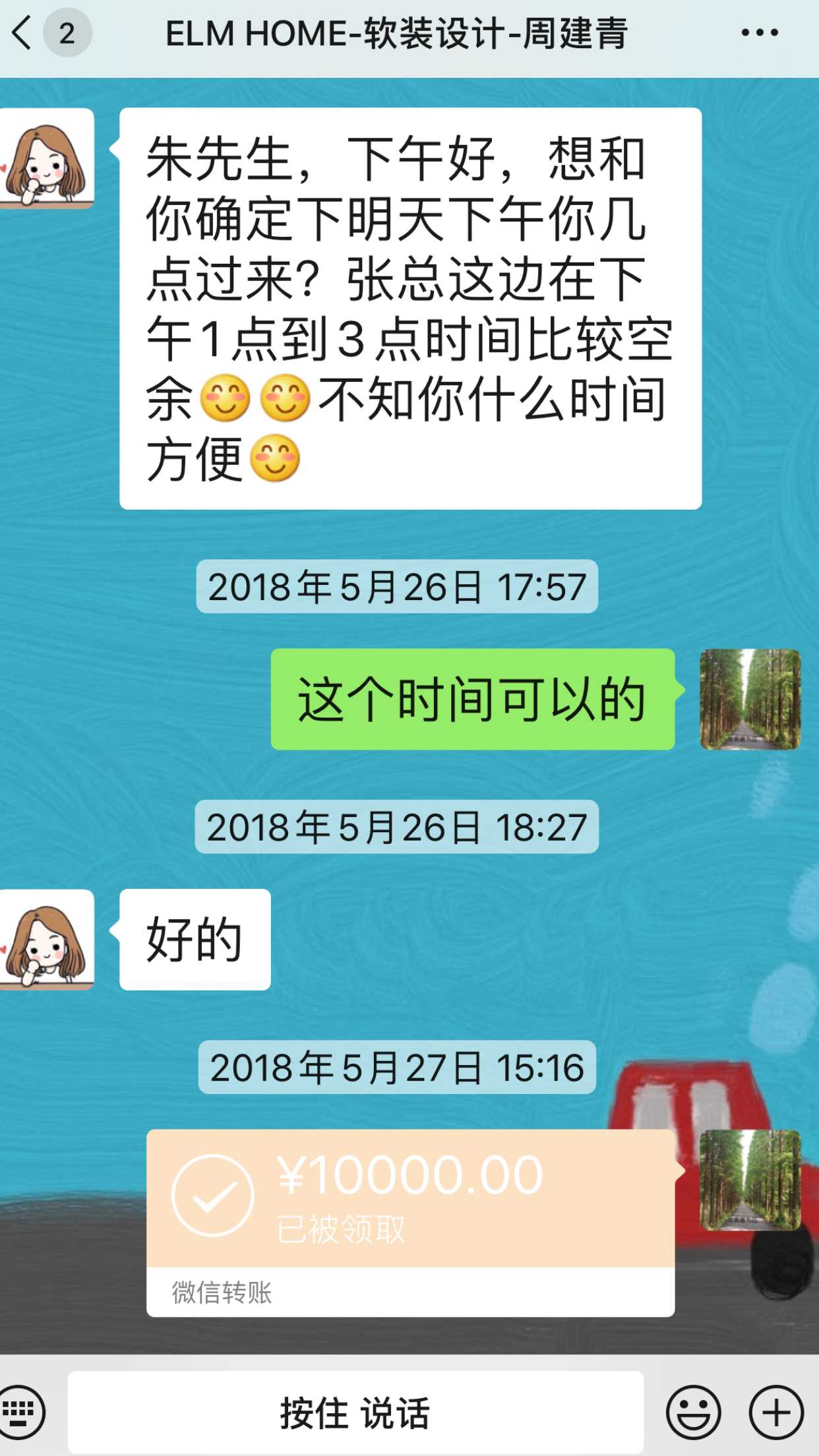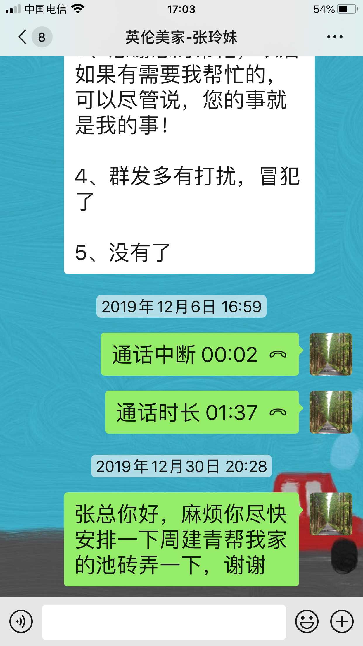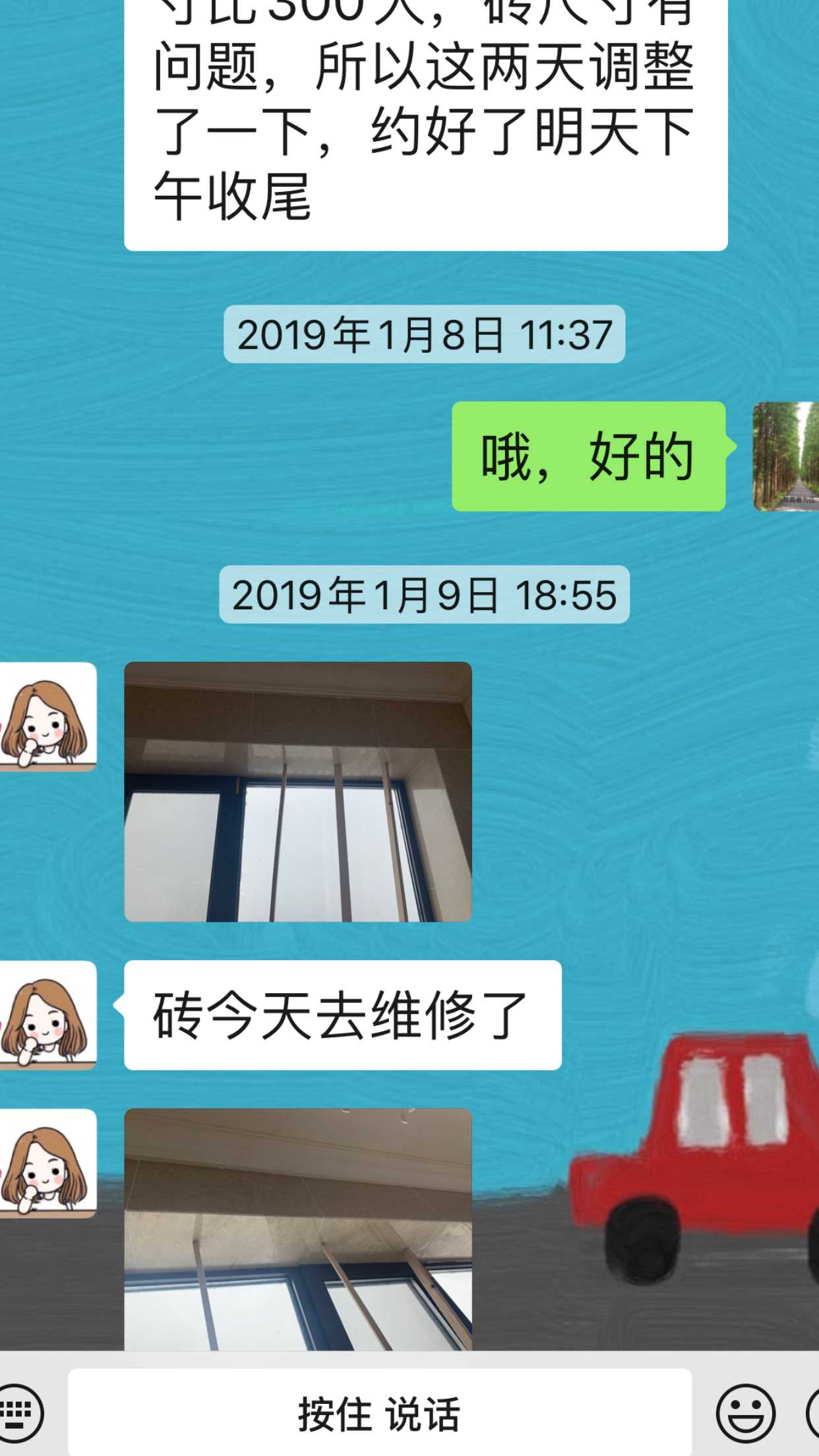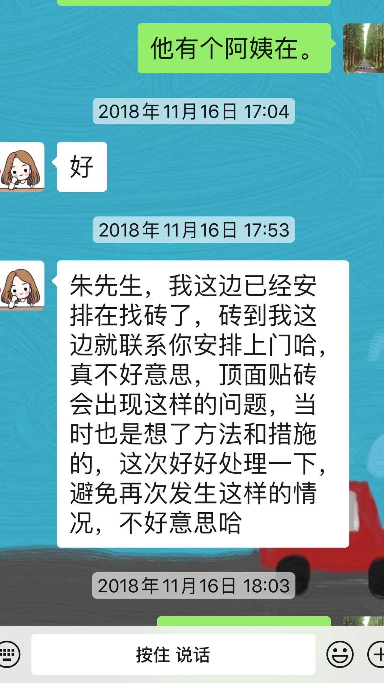 装修公司换了一位领导来对接这件事,双方达成一致协议,处理结束。 | 2020-05-15 |