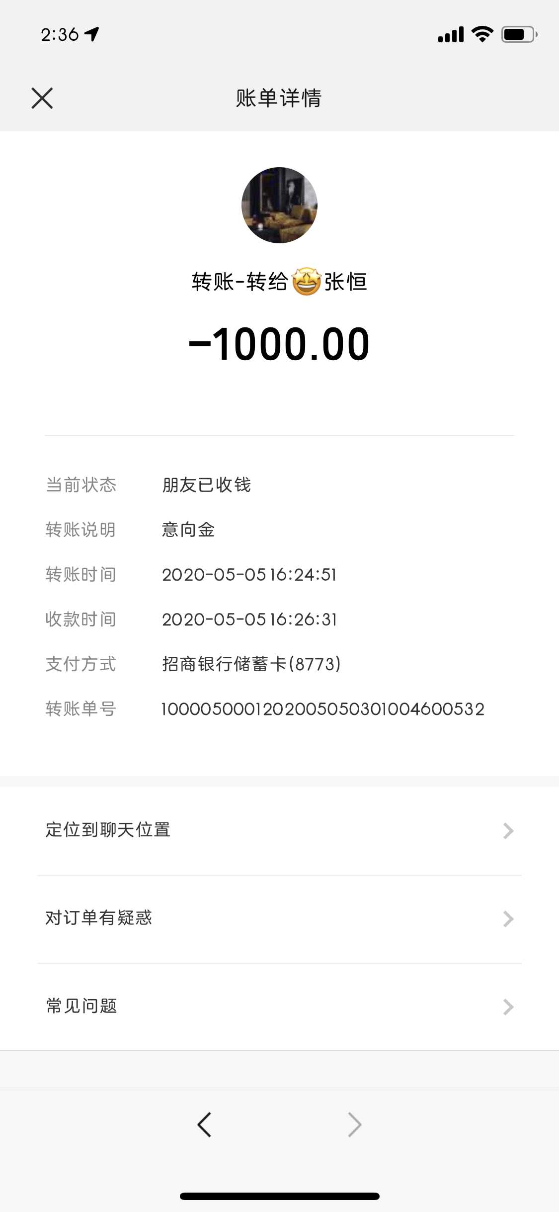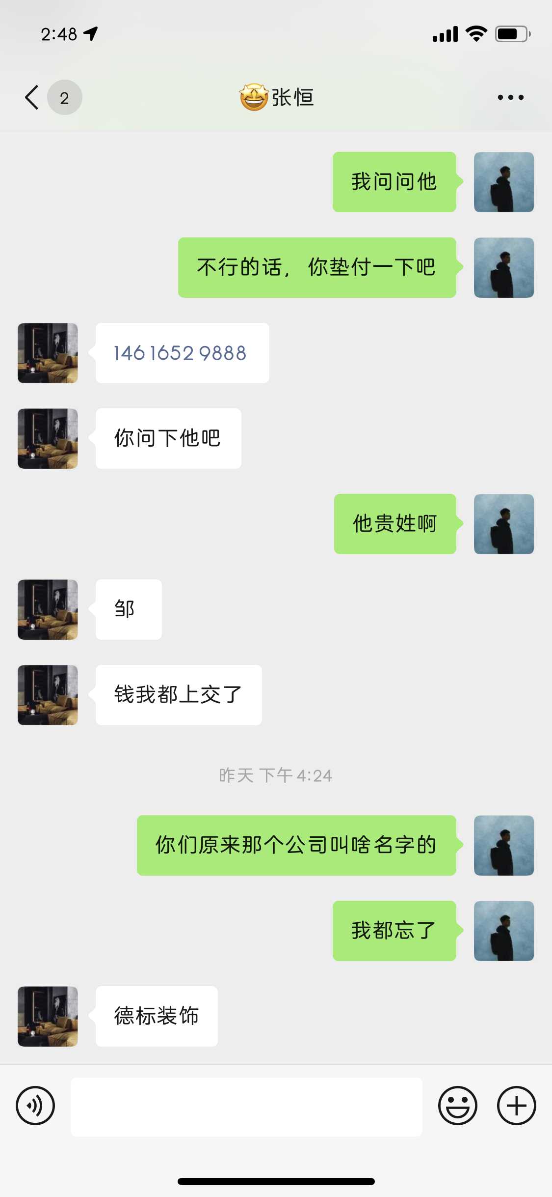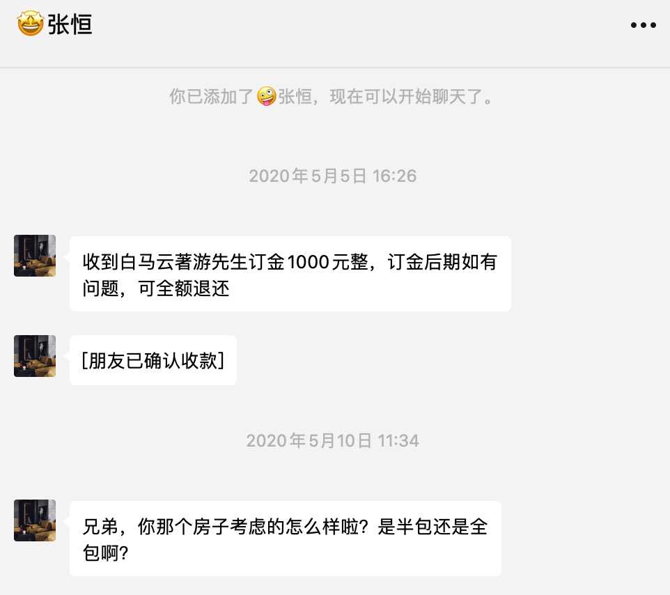 本人于5月5日,在和德标装饰商谈装修过程中,因为有其余事项并未谈妥,有意向在德标装修,固向其设计师张恒,通过微信支付一千元当作意向金,并且对方承诺不满意可以退还。未签订合同。 5月8号,因不想在德标装饰做装修,固和设计师沟通,对方表示可以退款,并在向公司申请,需要月底统一回款。 5月28日,咨询退款事宜,对方设计师表示离职,联系其邹姓领导,接通后被拉黑,无法接通。