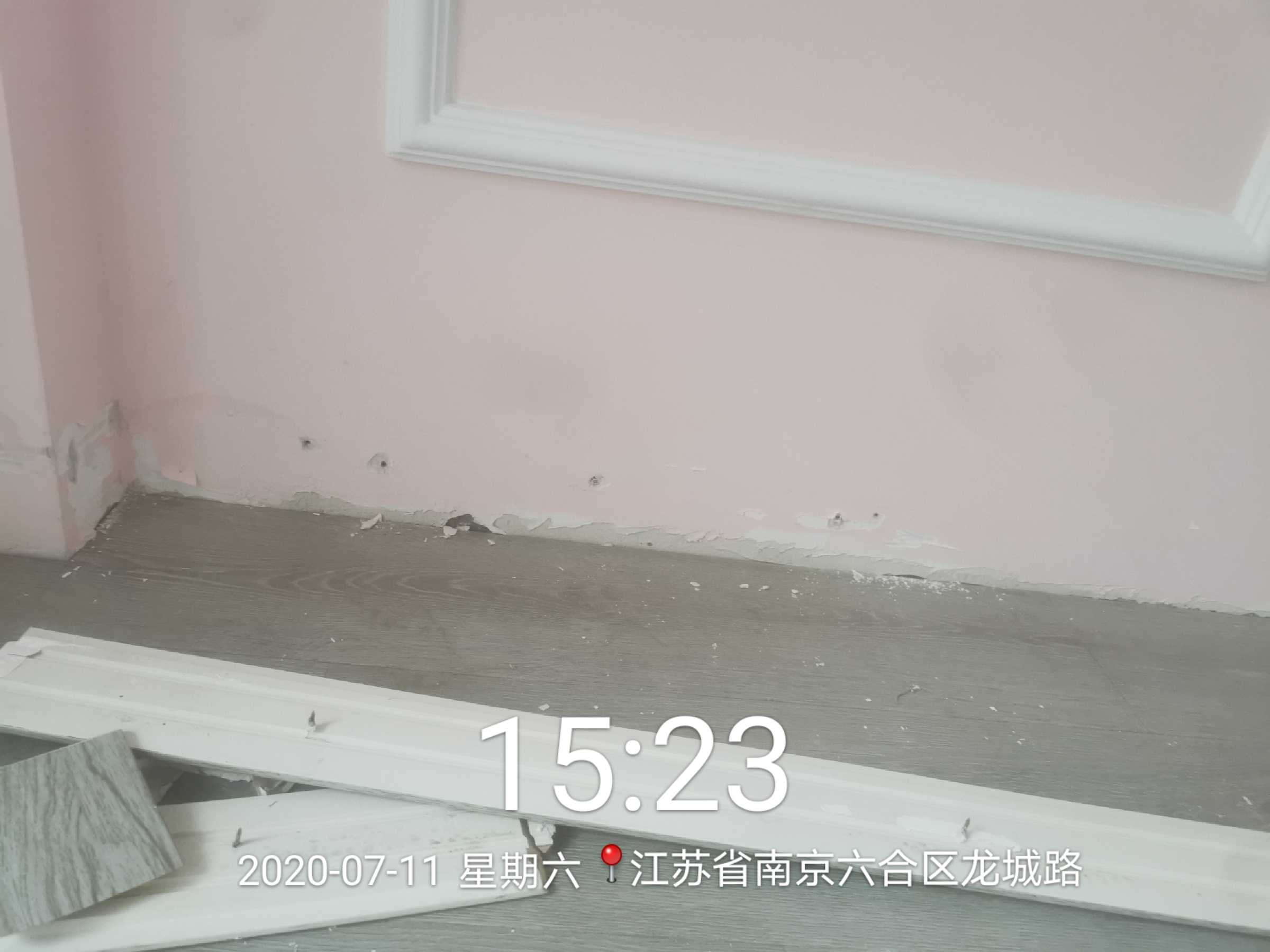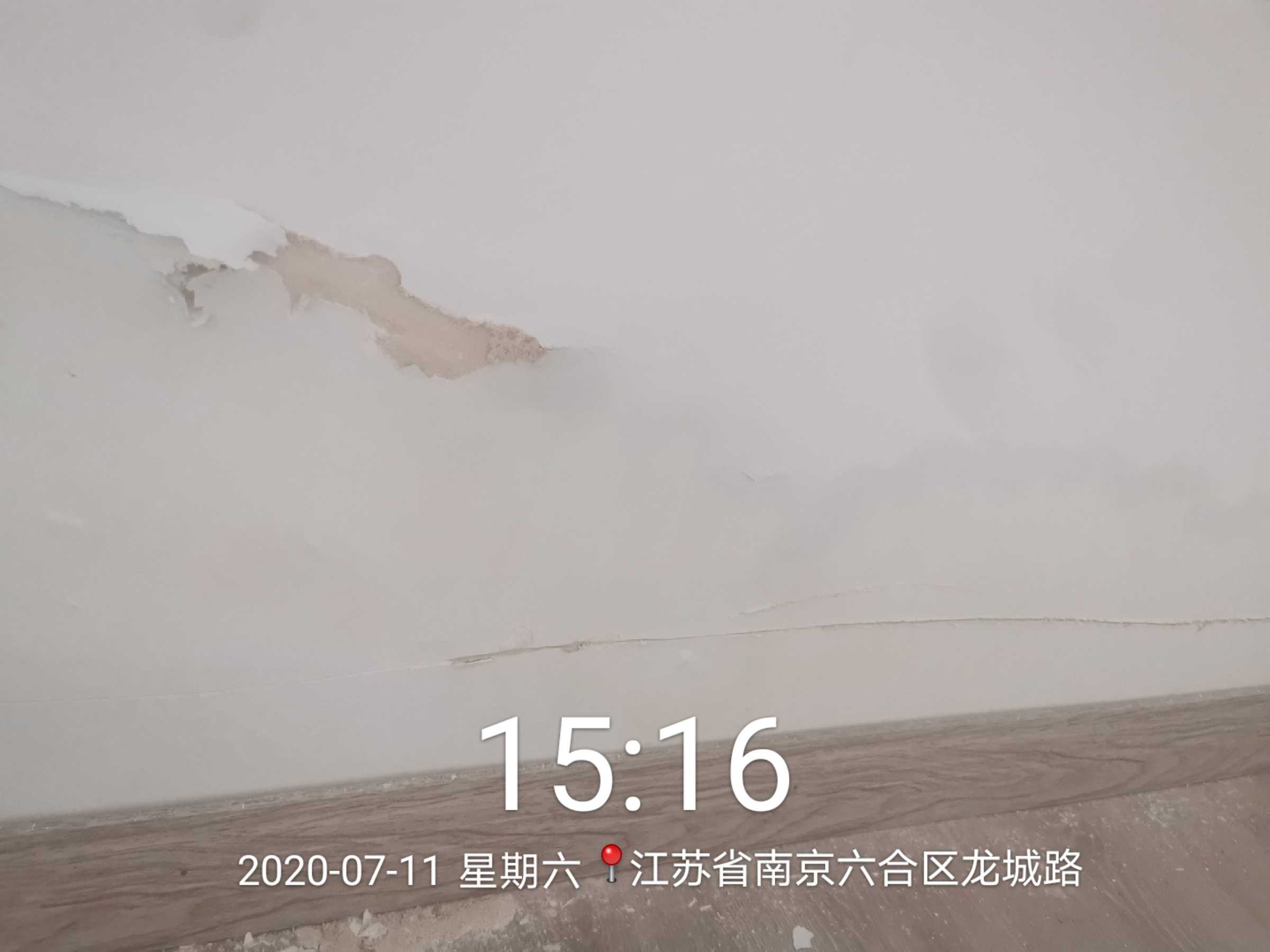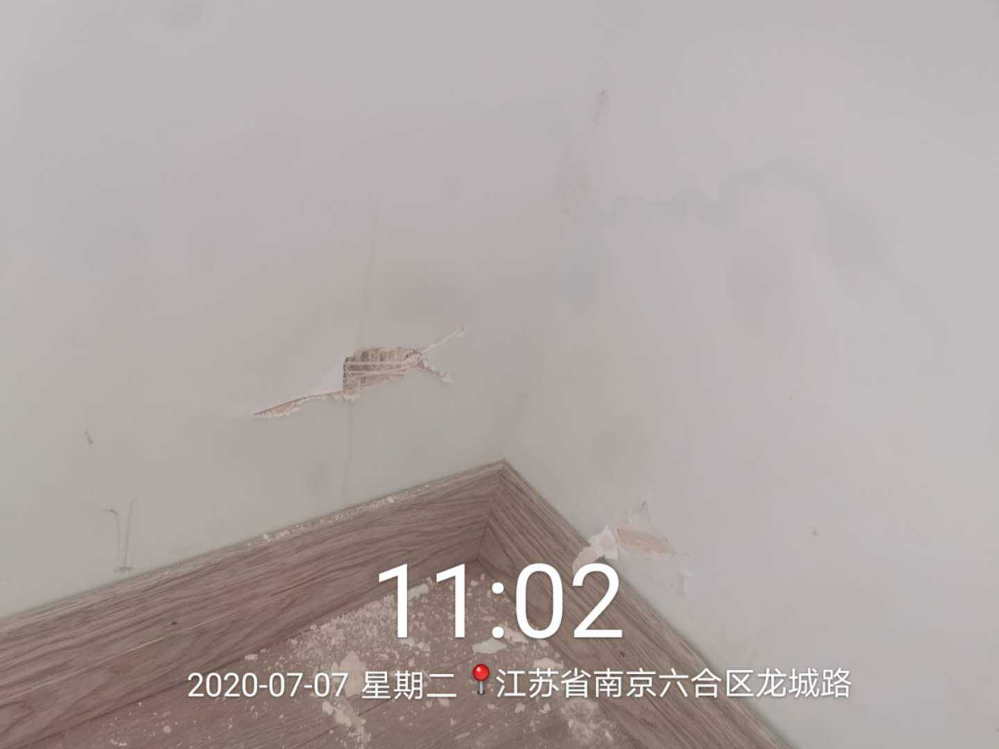 我家是六合龙池文石雅苑顶楼的毛坯房,在2019年11月21日在浦口区找了一家达通饰家的装修公司并当场交了5000元定金,全包给这家公司。11月底正式开工,一直到今年2020年7月11号还没装修完。期间厨房瓷砖贴好后因为不平整,导致橱柜斜的比较厉害经过协商又重新返工。过完年以后到现在,有一个靠近露台的房间反复渗水了好几次都没有解决。在7月7号,我把装修公司老板丁总,设计师和项目经理,还有做防水的老板一起喊到渗水的房子一起商议怎么解决。经过他们双方协商,把渗水的两处地方的瓷砖撬开做个48小时闭水试验看是否是防水没做好导致渗水的还是装修公司施工质量没做好。在闭水试验做好以后,又在墙砖底部撬了一块墙砖,当时就发现之前做好的防水卷材被装修公司贴瓷砖的时候全部破坏了,被人为的切掉了。当时我 就问装修公司的负责人,做好的防水卷材为什么要破坏,给我的回答是回去问下,等48小时闭水试验以后再一起过来解决。前两天给装修公司和做防水的约时间,我们双方约的7月11号下午两点一起来,到了下午两点半我给装修公司发微信问他们到哪,姓丁的老板说车被水泡了过不来,给他们设计师打电话始终都不接,他们的项目经理直接就在微信里说不是他们的责任,是防水的问题,现场也不来处理。在微信里我也一直在跟他们沟通,跟他们说闭水试验到今天为止已经做了90个小时了,也没有出现渗水的情况,但是你们装修公司在贴瓷砖的时候把我的防水卷材破坏了,水是从防水卷材下面流到水管电管的开孔处导致房间渗水,他们拒不承认问题,一口咬定是防水问题。现在另外一个朝南的主卧也渗水了,得不到解决,经过这几个月的反复渗水,两个房间的墙面全部起皮脱落,两个房间的木地板也全部起鼓开裂,希望贵司能帮忙出面沟通解决。