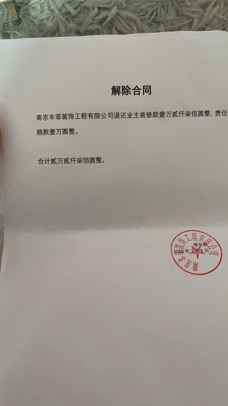 对 南京丰菲装饰 的处理过程: