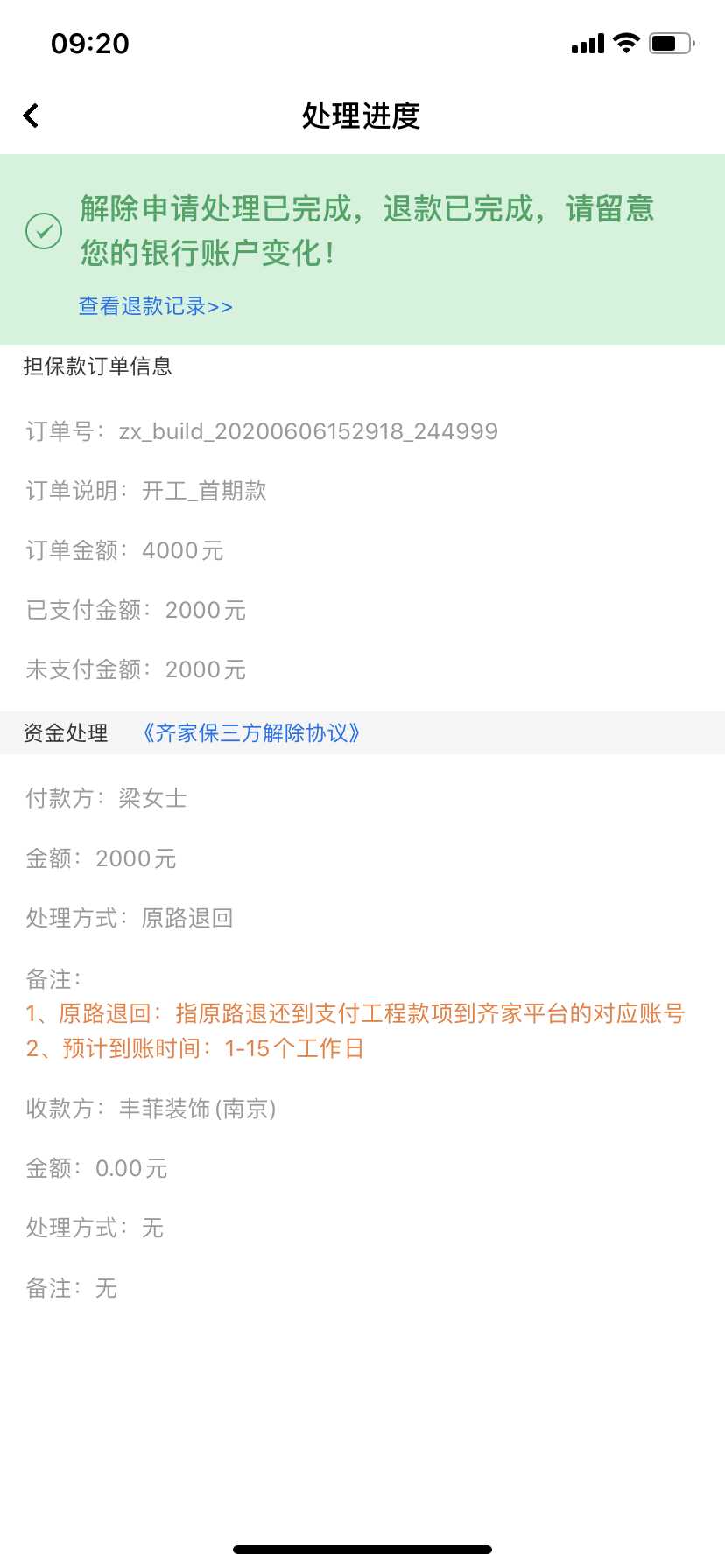 应该在7月10日左右款项到我们消费者这边,但是半个月都没有着落,联系齐家网数次,依旧没有解决。