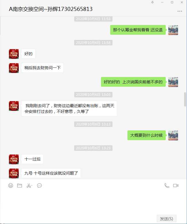 新空间负责人说国庆期间不出帐,这几天一定会把钱退还给消费者。投诉站转达给消费者,消费者认可。 | 2020-10-15 |