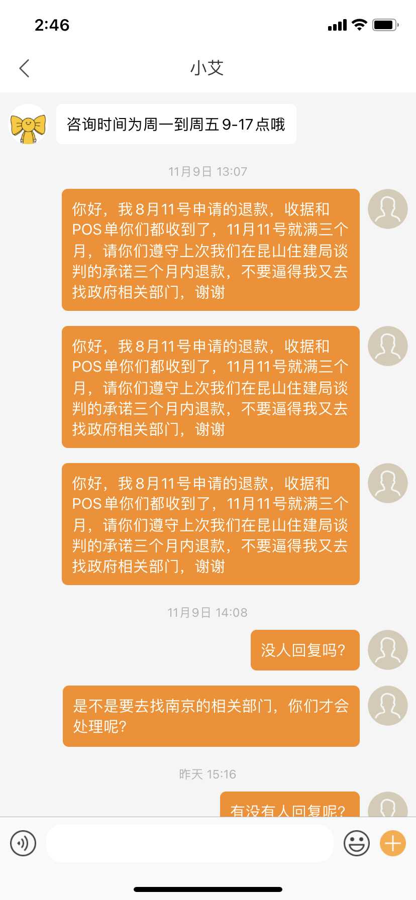 400电话无人接听,留的联系电话也无人接听 | 2020-11-12 |