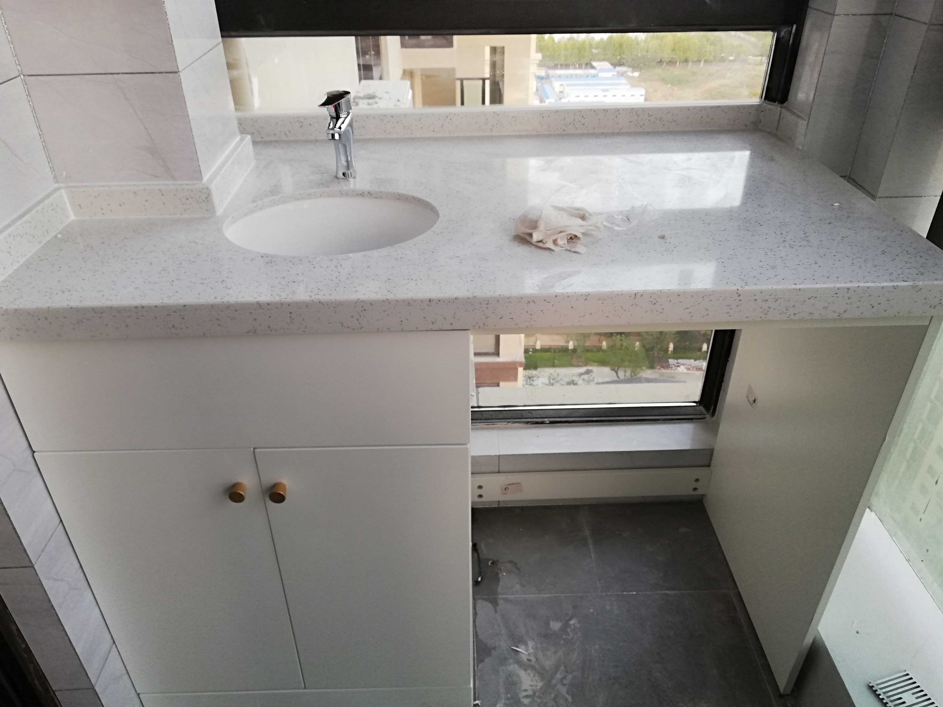 4.整体未按照要求定制,水池比要求的尺寸小很多,且台面高低不平。