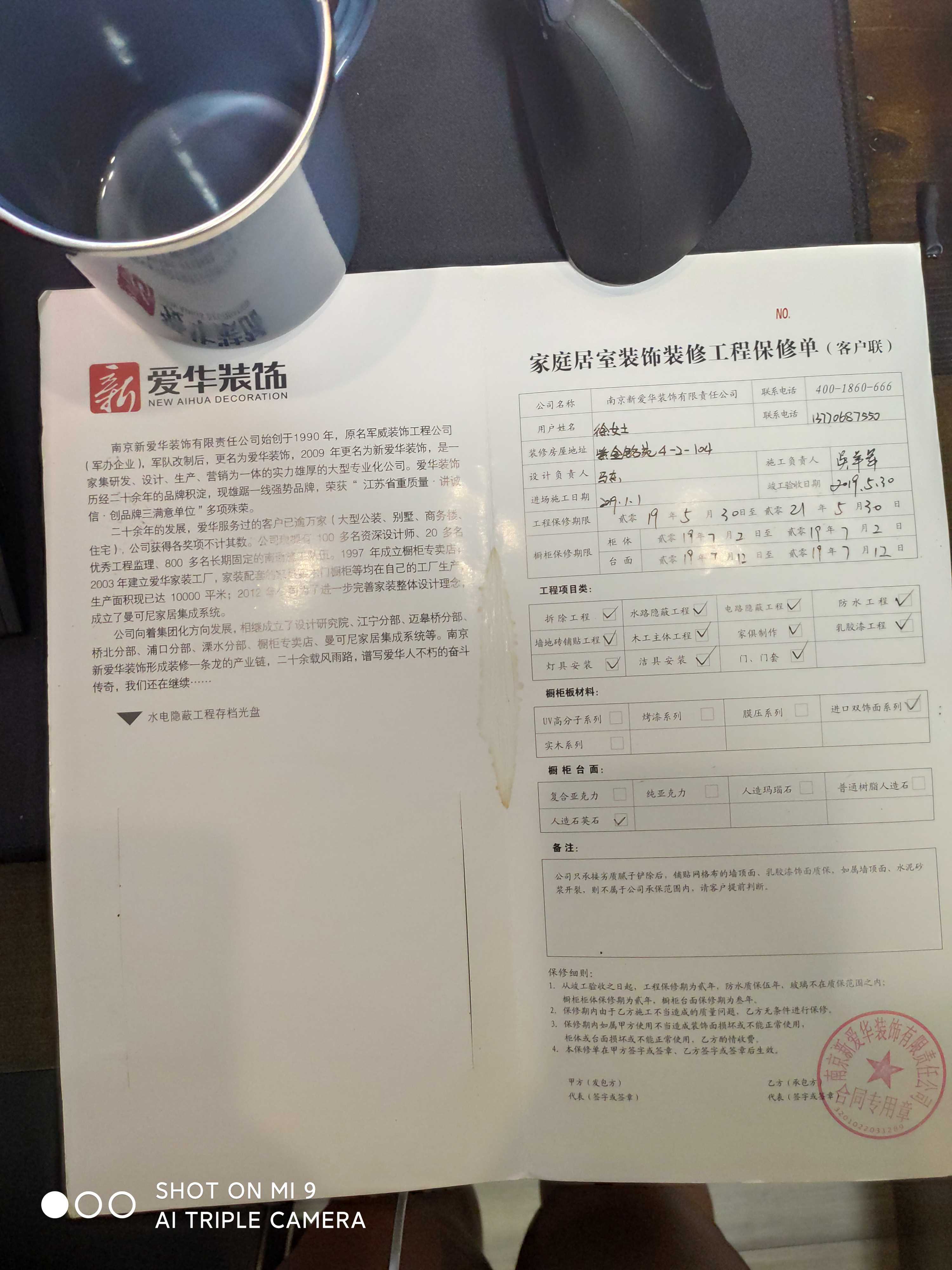 19年7月份装修结束,自装修好入住第一个冬天(2019年12月)以来,发现背面房间北墙出现水珠,随后上霉,联系新爱华公司,和设计师沟通好进行售后,由施工队现上门检查,但对方迟迟不来,被耽搁了下来。到了2020年11月份,再次发现同样问题,而且更加严重,并且床与踢脚线也严重上霉损坏,并且发现次卧南墙也受潮上霉墙面掉皮,再次联系新爱华公司设计师,上门检查后,约定好提供维修,因为梅雨天气,决定六月开始维修,施工队长再次登门检查,和公司报备维修,公司拒绝维修,我于6月22日到新爱华公司总部沟通维修,然后23日对方曹工再次登门检查,说是自然灾害,最后给出两个方案:1、只在墙面重新刷一层防水乳胶漆(无法保证墙面正常)2、做保温防水,需要我们来承担费用,对此,我们不接受这个方案,24日再次去新爱华公司,曹工答复没有其他方案,拒绝承认装修质量问题,不予提供售后,现希望通过该平台领导解决售后问题。
