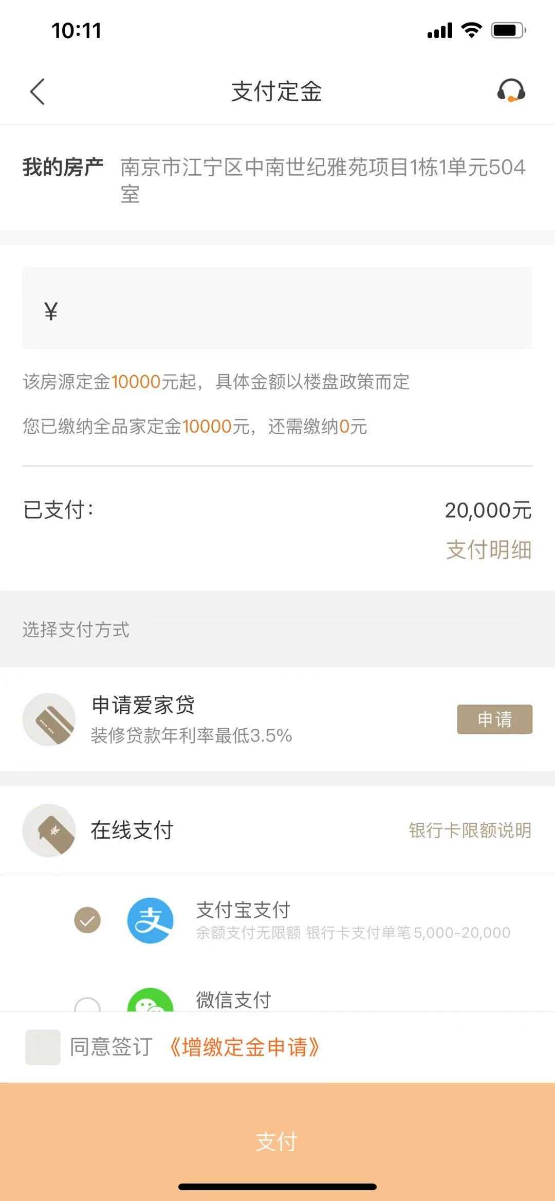 1.本人同艾佳生活于2016年9月15日签署艾佳生活《软装认购协议书》,交付定金20000元。