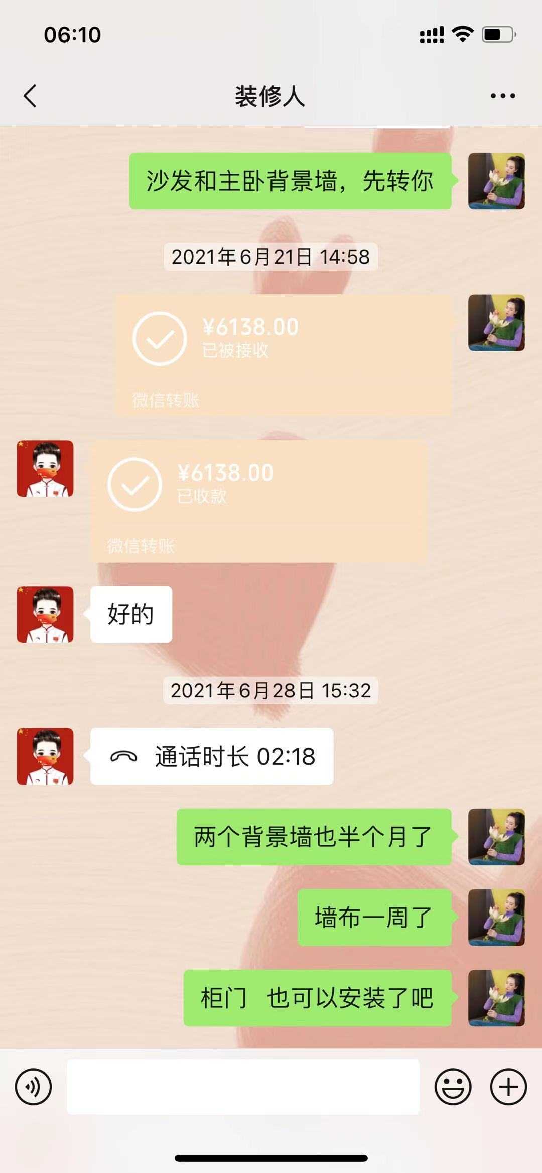 我们于2021年3月30日与南京毕升建筑装饰有限公司的法定代表人 赵智会(身份证号码:32088219870202121X)签署了装修合同,合同期限3个月。截止今日,装修事宜未完成,目前剩余房门,厨房、卫生间门、橱柜门没有安装,也没有送货。负责人赵智会一直处于不回复信息不接电话的失联状态,期间我们多次催促,他以各种理由拖延,后因为疫情期间无法见面,疫情过后就再也联系不上了。