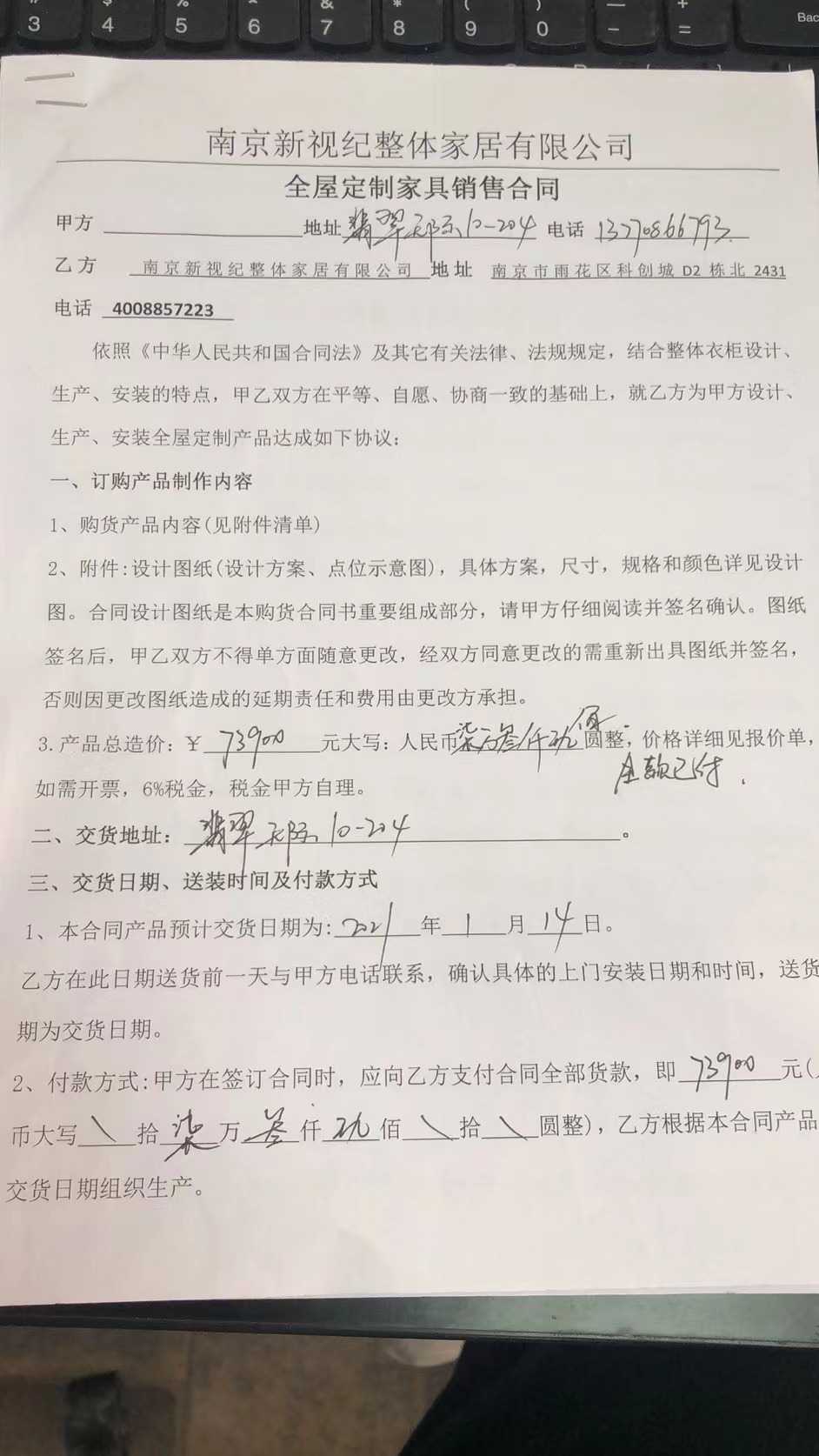 对 南京新视纪整体家装有限公司 的投诉依据:
