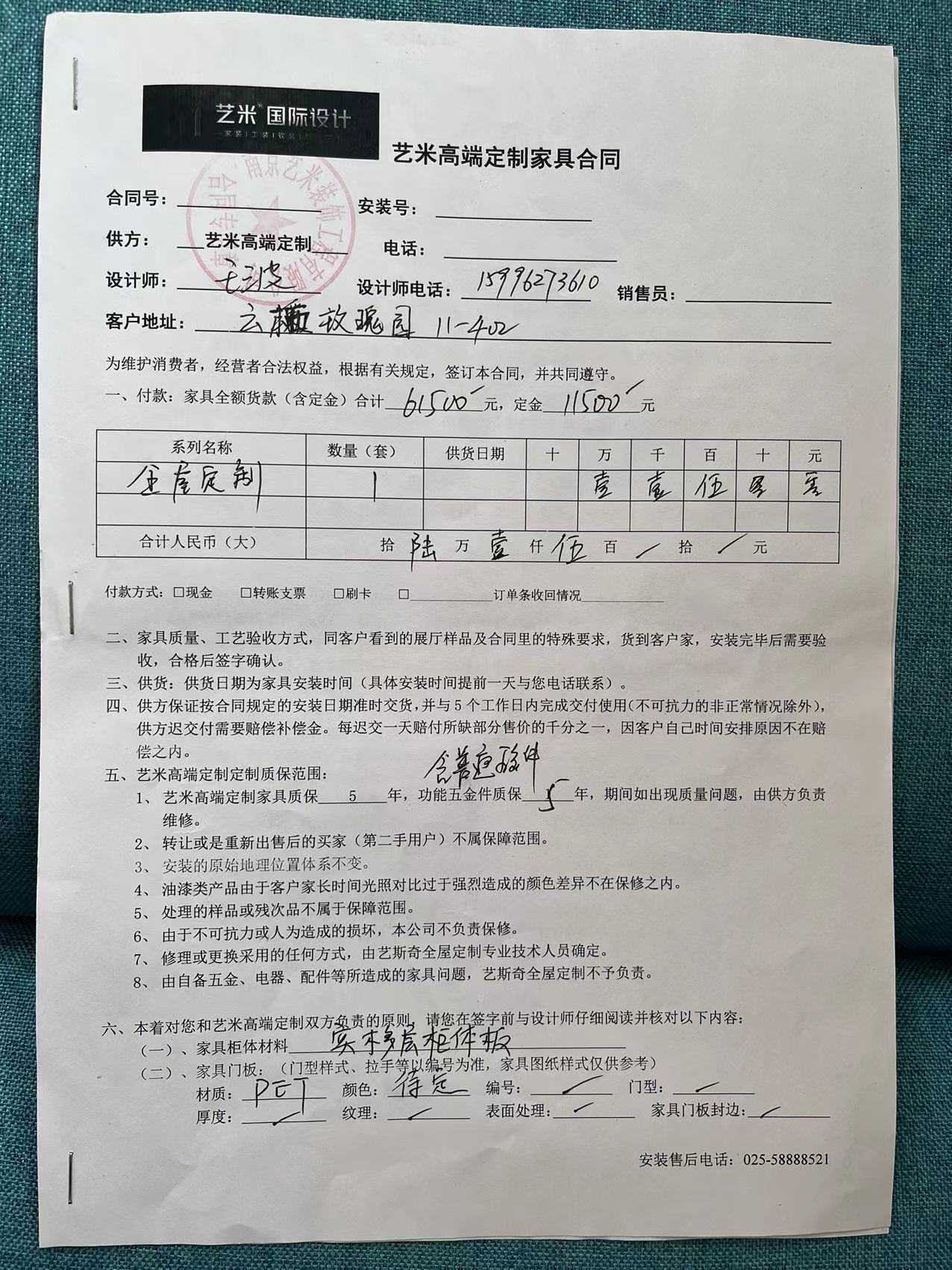 对 艺米装饰 的投诉依据:
