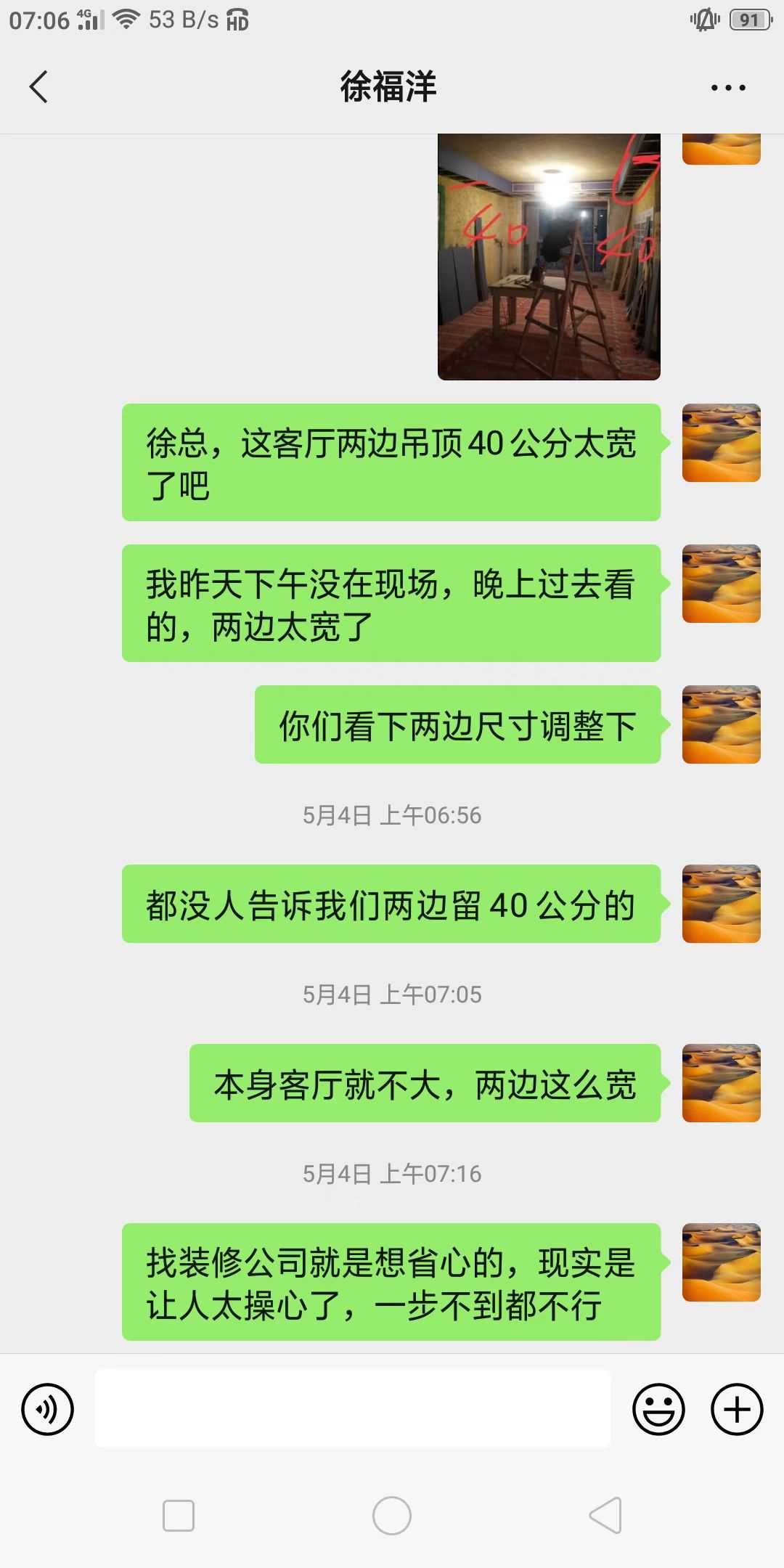 亚瑟装修负责人回复:1、吊顶的灯线当时图纸是划掉的,承诺过可以操作,没问题。2、腻子粉有标准工艺,另一种牌子比立邦好,是公司主推产品。3、阳台没有吊顶,不处理。 4、愿意与消费者解除合同。双方先沟通,沟通未果会与维权站联系。 愿意与消费者沟通。 | 2022-06-17 |