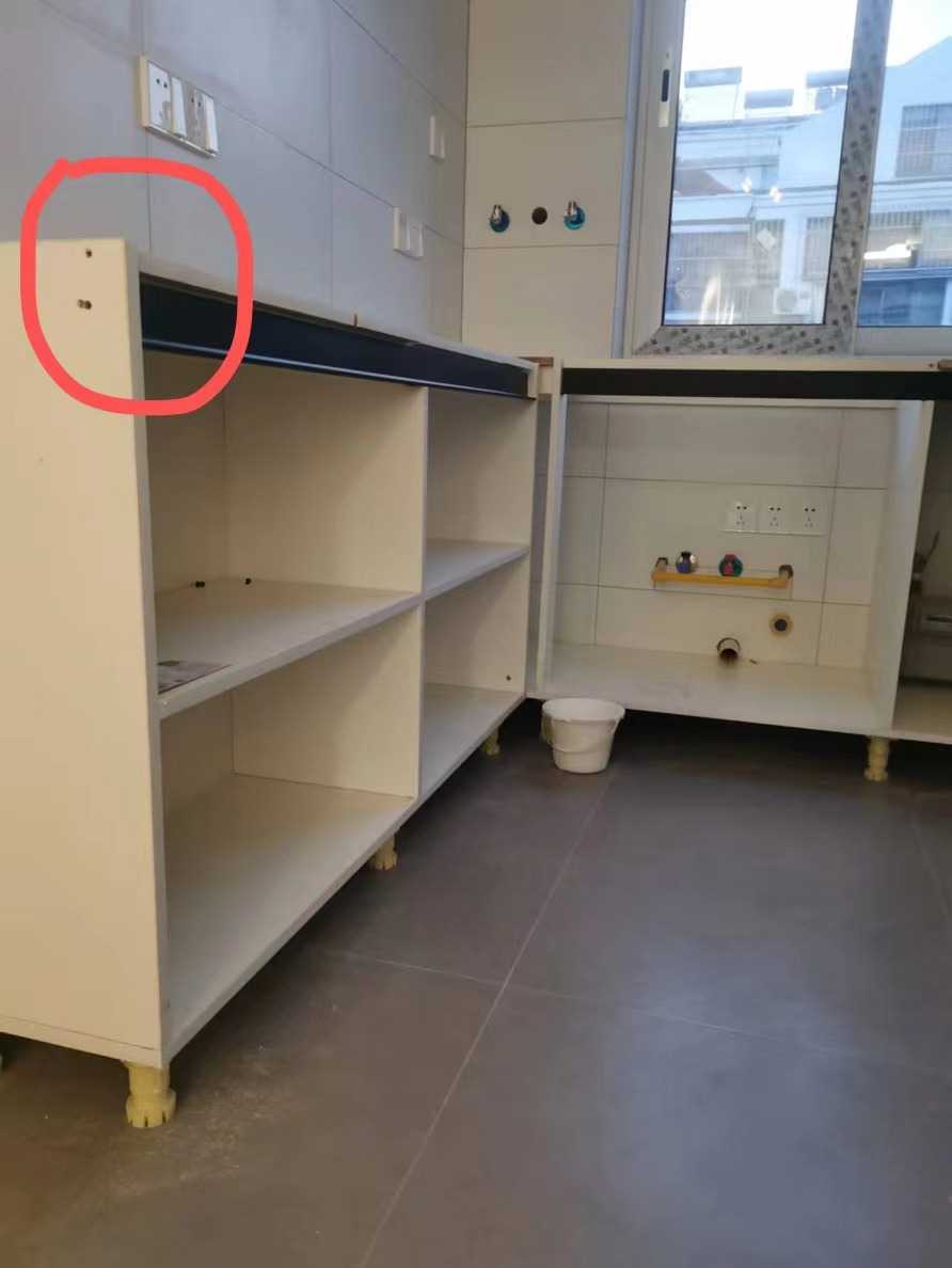 (1)师傅错误打孔,在柜子侧面留下了几个钉子眼;