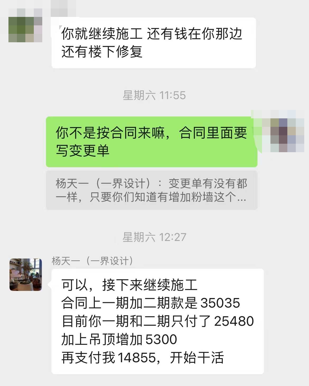 合同上开始日期显示为2022.12.29,2022.12.28日给对方公司转了首笔款16170,对方公司合同也一直未签署,拖到2023.2月才签署合同。开始告知年前能将窗户安装完毕,找师傅来砸墙,旧窗户也被卸掉,除首笔款外单独又支付5500元。后因天气寒冷,水表被冻坏,导致漏水渗到楼下,第一时间告知装修公司此时,装修公司告知他来给楼下处理。期间又支付了9000元费用给装修公司。后装修期间师傅离开,水阀忘关,导致再次漏水至楼下。期间跟装修公司沟通,衣柜改为定制,合同款中取消掉打衣柜报价。二期工程款给了16090,目前项目进度瓷砖铺贴完成(瓷砖,物料全部我们自行购买),询问工程款结余多少,告知还剩5000多。现要装修公司处理安装的窗户漏风,电线布管过高木地板无法铺贴,瓷砖铺贴不齐,垃圾未清理,维修楼下漏水等问题,装修公司拒绝,说不同意取消打衣柜,原本给我们总价8折优惠也取消,告知我们现需要再支付14855才开始干活。现装修对他自己自己工程质量不愿意质保,楼下漏水也不愿意维修。