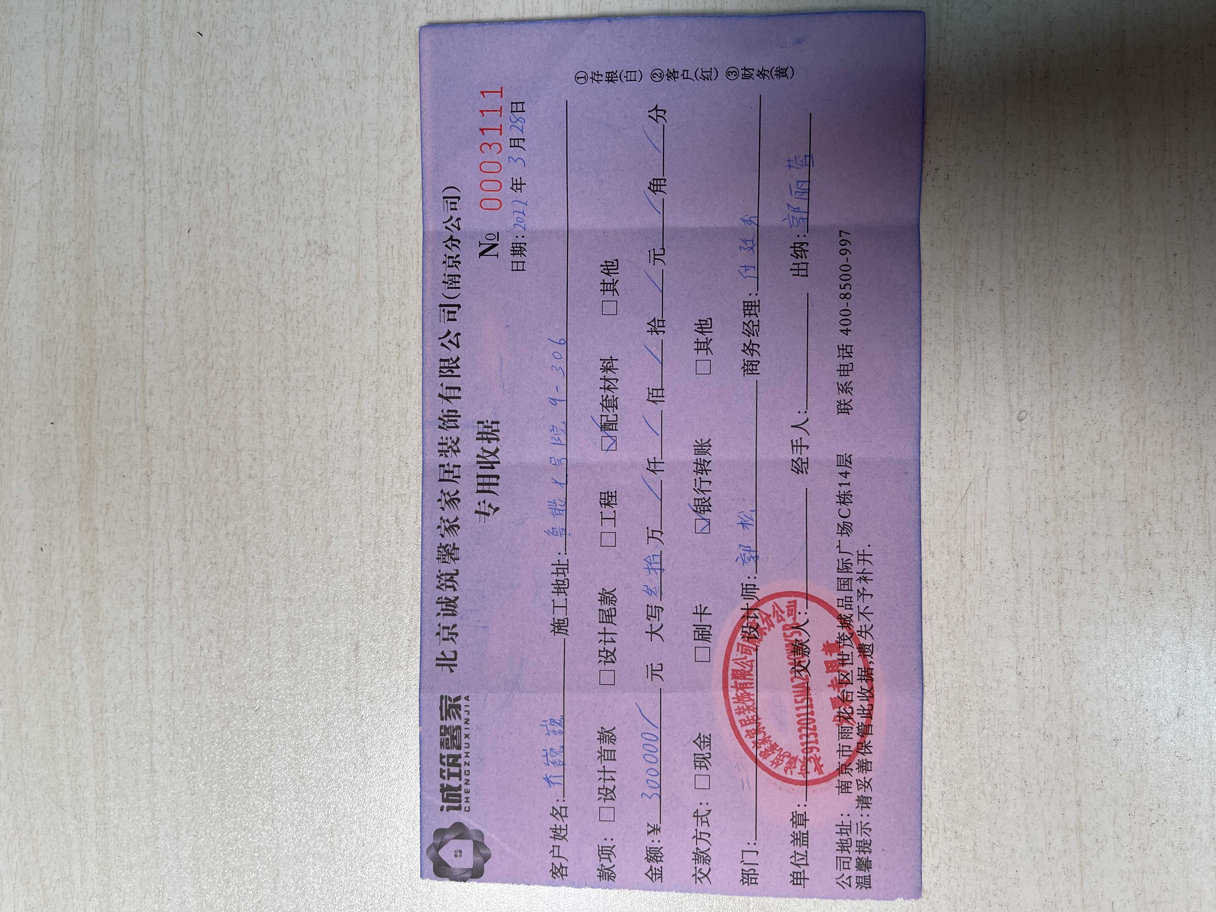 对 北京诚筑馨家家居装饰集团有限公司南京分公司 的投诉内容: