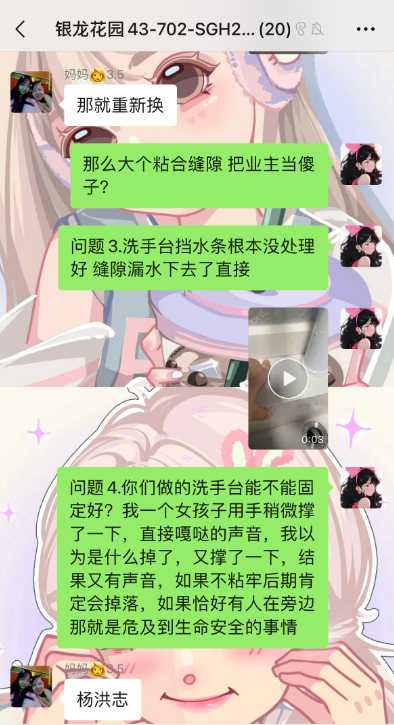 从定制柜开始就一直出现各种问题,如商家安排软装进场后地板有洞,淋浴间溅水,水龙头松动溢水,厨房两处空鼓,等等问题到上周二发现浴室台盆松动,反馈到装修群里,施工管家回复会联系师傅处理,直到周六台盆断裂,我们业主方再次反馈才得到装修公司回复说联系厂家上门查看情况。