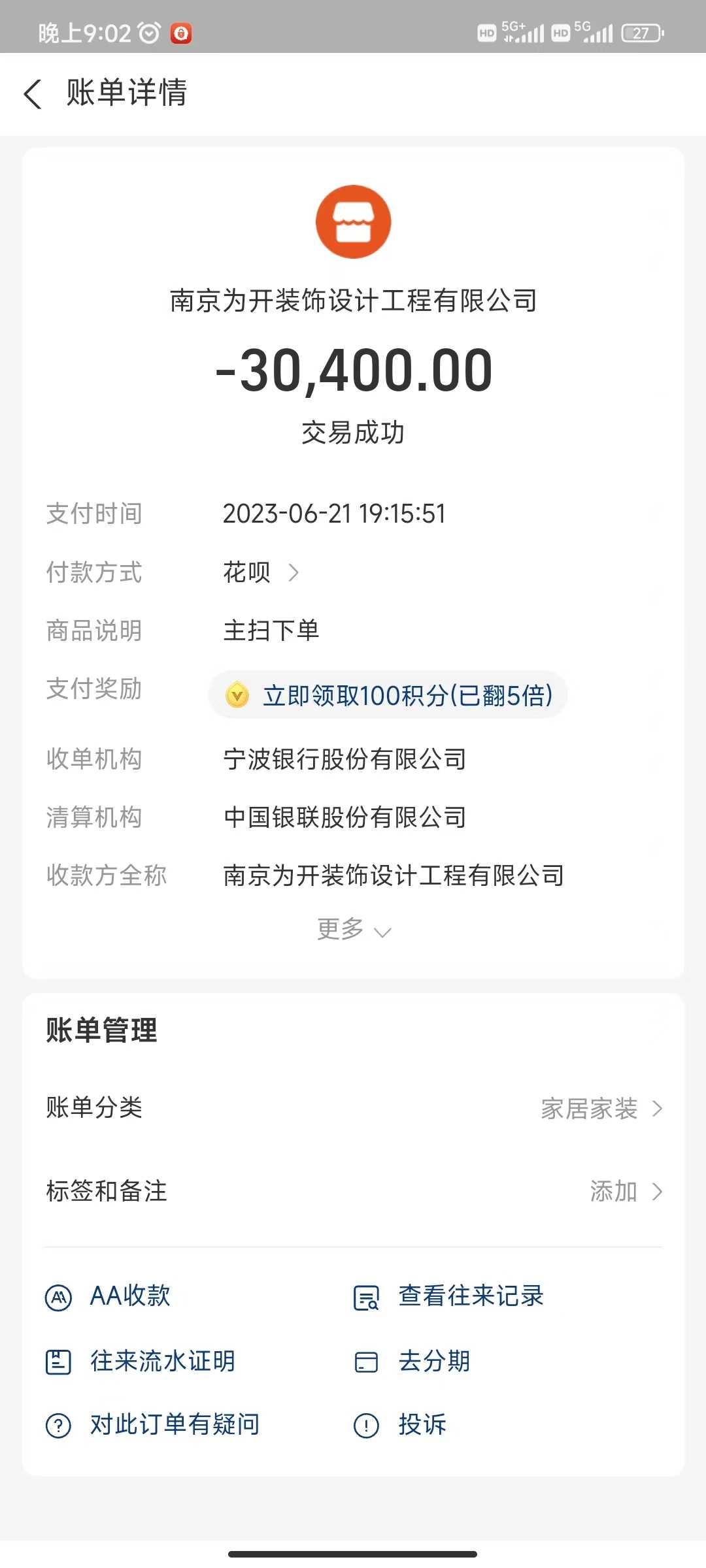 对 南京为开装饰设计工程有限公司 的投诉内容: