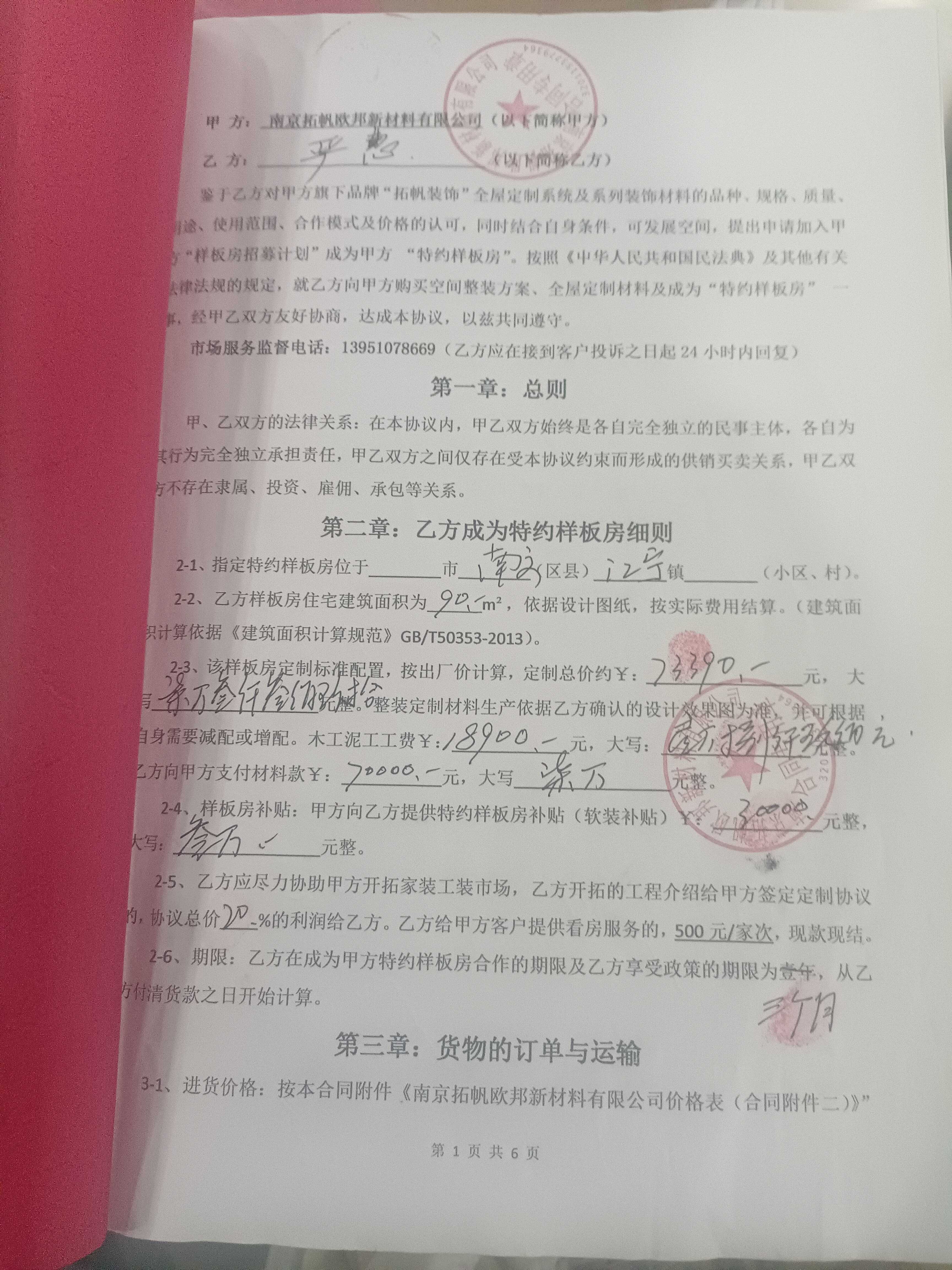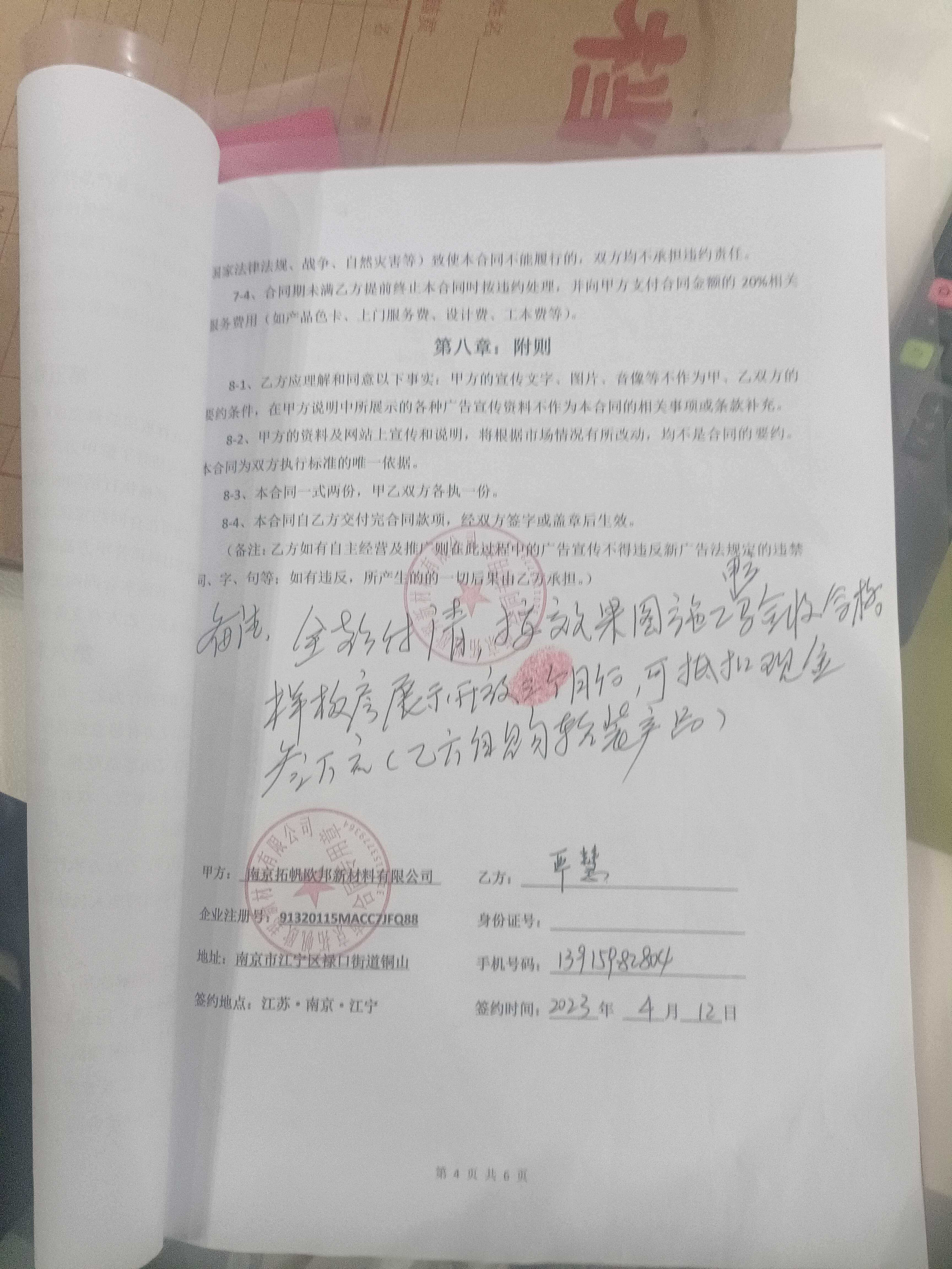 南京拓帆欧邦新材料有限公司 所在卖场:街边店铺,点击查看此卖场相关投诉信息