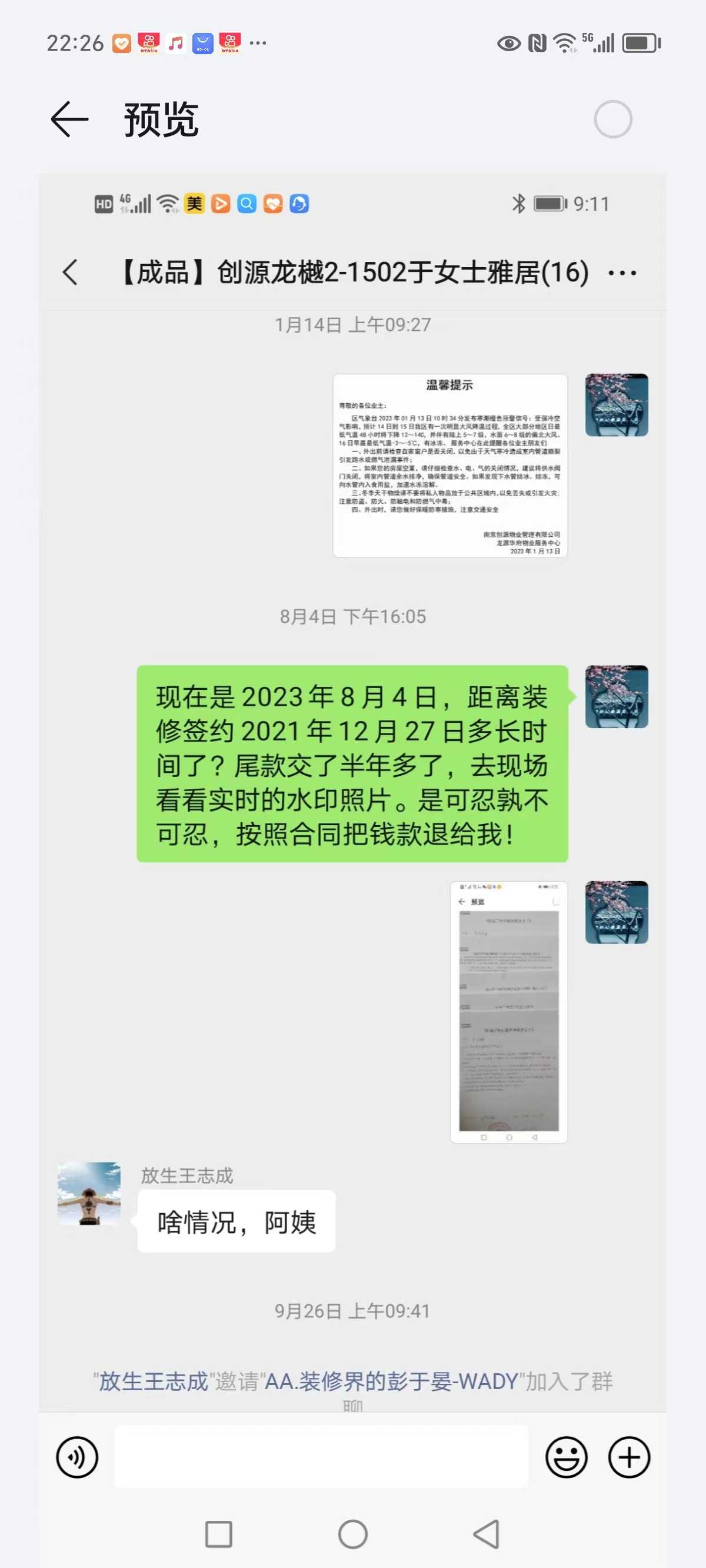 我们人一直在外地,2021年12月27日现场与南京交换空间家具有限公司签订新房装修合同。位置在栖霞区创源龙越,硬装价款116000元大包,包括灯具、窗帘等。大概2023年5月份尾款已交付。他们承诺会安装摄像头,拉到群里,视频同步推进装修流程,开工后我返回秦皇岛,不到半个月设计师胡锦波离职,他承诺我们的项目他一定会负责到底,之后再也没有去过现场,全程缺失。2023年5月,项目经理王志成空调打孔打在消防通道上,物业不允许安装,打了无数电话一直没有推进,直到现在。空调安装费600元已付,申请退回(卓木年家庭维修平台推荐的师傅于甜甜,他派个师傅杜平通过支付宝收费600元)王志成2023年6月份、9月份,最后11月15日接了我的电话,搪塞推诿之后告知他已离职。我家目前空调孔打错了,房间墙面改线是明线,室内一片狼藉,赠品大床、床垫、床头柜没有到位,门和墙面之间的细节明显不协调需要修复,还有厨房的很多细节,操作像是街头桥头民工。从一开始的隐蔽工程验收根本没有任何图片或者视频,失望至极。(杨星是单位法人,我尾款交不上直接微信转给他了)