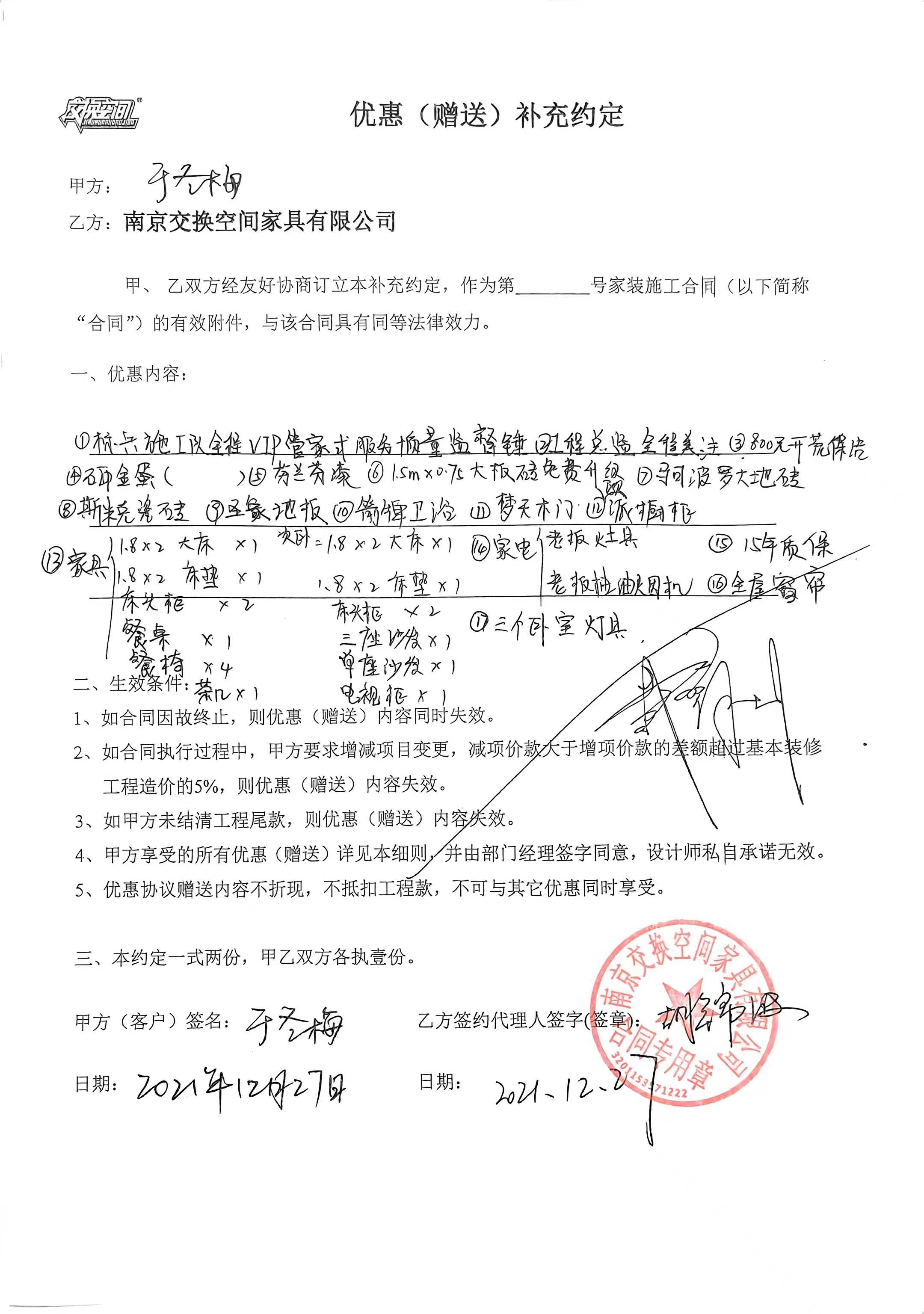 对 南京交换空间家具有限公司 的投诉依据: