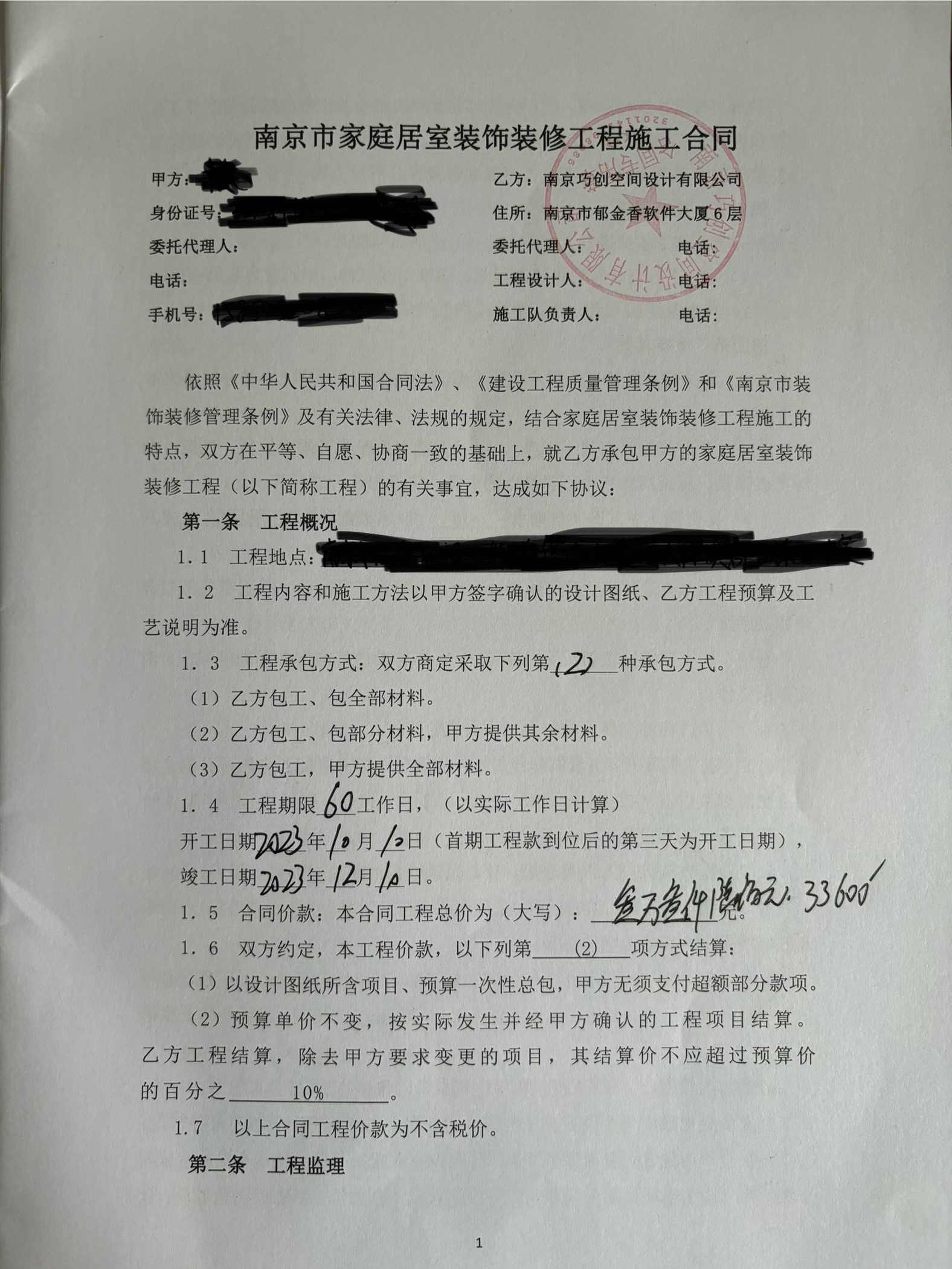 投诉类型 | 施工质量 | 投诉人 | 卞** | 被投诉单位 | 南京巧创空间设计有限公司 |