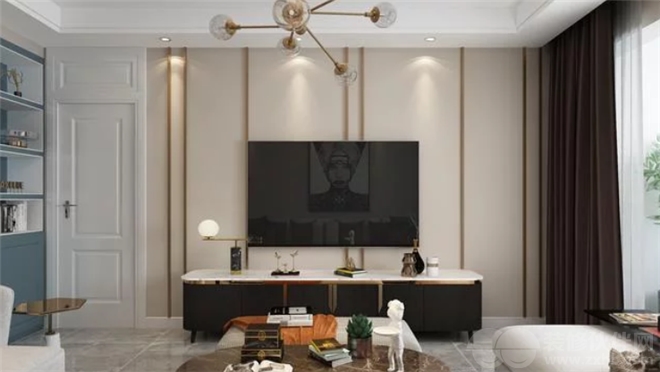 2、克制——高級却不张扬的色彩搭配。轻奢风相对比较少采用高饱和度的色调,防止因强对比色而造成的冲突感。提议选用含有高级感的中性色作为家的主色调,比如说象牙色、深灰色、淡咖色等,与此同时配搭其他的亮色作为家里的亮点,防止单一化中性色配搭带来的单调与冰冷感,让家里显得更为温馨、高級。