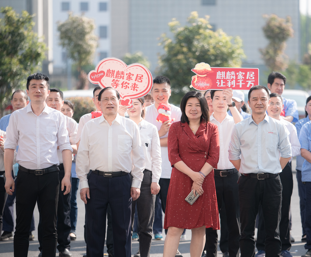 出席本次周年庆开幕仪式的有麒麟家居董事长陈映、顾问张殿文、总经理卢涛、副总经理兼全国营销总监徐康及麒麟家居全体员工。
