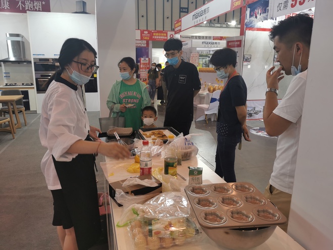 瞧!还有商家现场制作甜品小蛋糕,供用户享用,借此向用户展示如何操作使用烤箱等电器。(悄悄的说,小编都想往家里搬一个烤箱练练手了~)