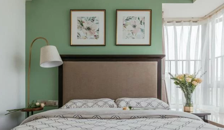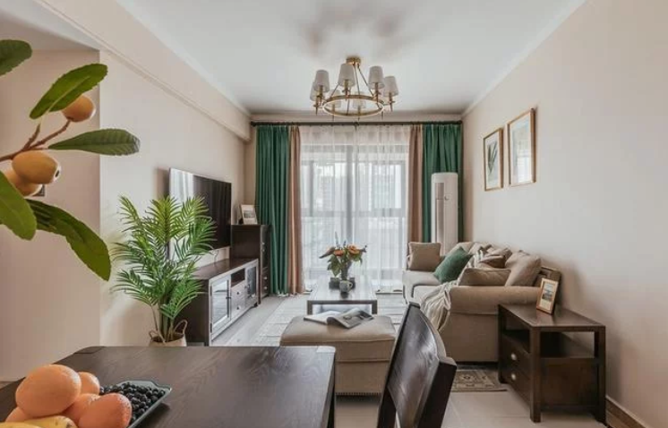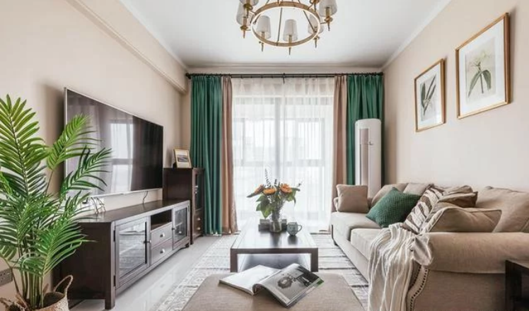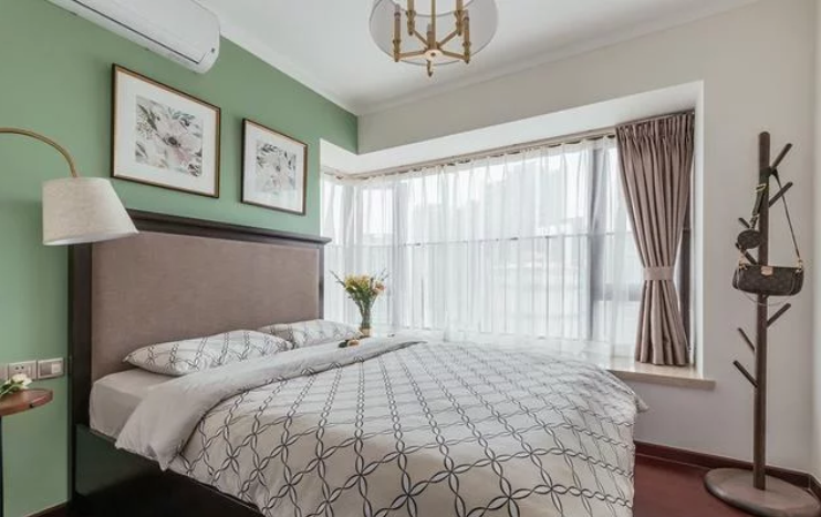 软软糯糯的奶茶色用在墙面上,舒适的浅色布艺沙发,圆角的木质家具,一深一浅,一轻一重,张弛有度。电视柜旁放置了一棵仿真的散尾葵,编织篮里漫不经心的放置了许多鹅卵石,一切都恰到好处。卧室到顶大衣柜、餐厅卡座储物柜、书房飘窗改装榻榻米储物等。多种方式储物收纳,不会过多的占用空间。卧室床头的装饰画选择了粉色虞美人,寓意奢侈的美;抹茶绿色的床头背景,配上复古大气的美式床,强烈的视觉冲击就这样产生了。