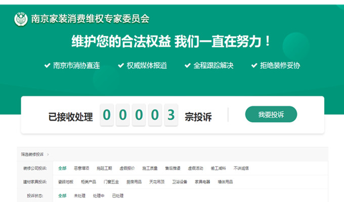 8月15日,由装修伙伴网设立的南京市家装消费维权委员会正式成立!装修伙伴网官网平台同时也开通了家装维权专栏,为广大消费维权投诉提供便利。