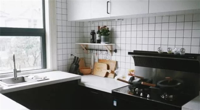 关于厨房内部的动线大家应该很熟悉了,最合理的动线为:洗菜(水槽区)——切菜(备餐区)——炒菜(烹饪区)——盛菜(装盘区)。动线流畅,日常做饭做菜才能一气呵成,否则就像在厨房打仗。