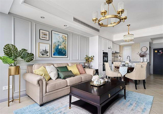 2、客厅收纳一定要做全,条件允许可以做整墙电视柜,或者添置别的收纳柜,不然你住久了真的会后悔。但开放格不要超过柜体面积的20%,增添打扫难度。