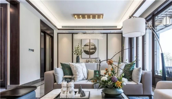 新中式风格装修并等于中式风格,也不是传统文化的复古装修,而是在现代的装修风格中融入古典元素,且更多的是讲究空间的层次感。空间装饰多采用简洁硬朗的直线条,直线装饰在空间中的使用,不仅反映出现代人追求简单生活的居住要求,更迎合了中式家具追求内敛、质朴的设计风格,使“新中式”更加实用、更富现代感。