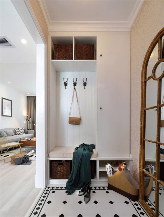 5、增加穿衣镜,方便出门前最后检查,并且起到扩大玄关视觉效果。