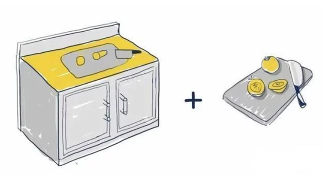 备餐区比洗涤区台面高度要相对矮5cm,这样切菜时才比较舒适。如果空间较小,不适合做高低台面,可以在备餐区安装台下伸展桌,抽拉出的桌面高度,比台面高度低约5cm,切菜备餐刚刚好。