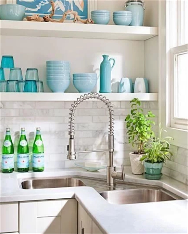 不难理解的是现在很多家庭的厨房普遍都比较小,有些厨房甚至是不规则的,相比于常规的水槽方法,将水槽安装在拐角处能更好的利用起这个死角。