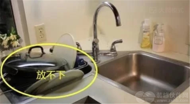 橱柜台面这边的拐角处,空间并不大。不管你是安装双槽还是单槽,水槽都不能太大。这样子洗菜洗不了多少,还容易将脏水溅出来。要刷洗个锅都放不下,超级麻烦。