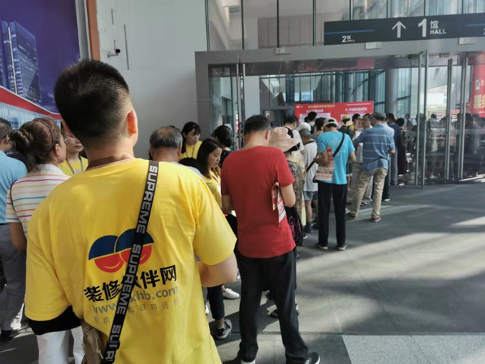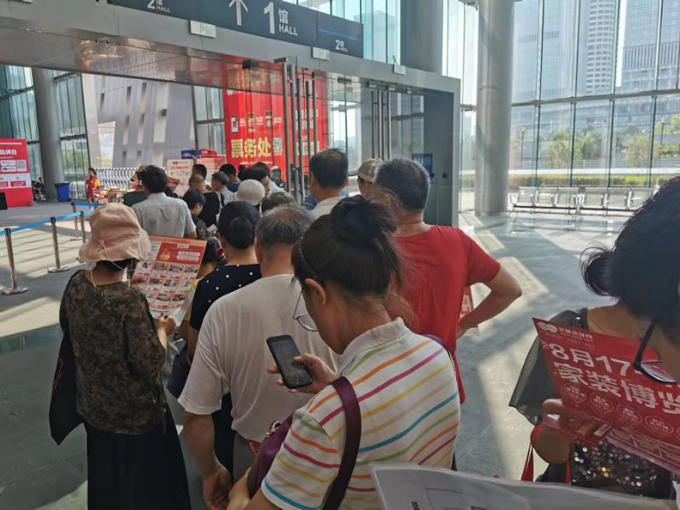 炎炎烈日之下,热情的业主们在家装博览会活动现场排队签到。
