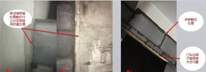 正确的做法是把新旧墙交接处就强裁切不少于12公分,用钢丝网做垃圾,后期才不会开缝,大家以后切墙的时候一定要盯紧工地,不在线,要拍照片,没有照片,就敲出一个地方来查看一下。