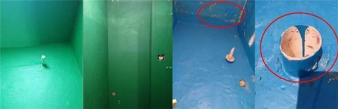 图三图四:涂刷不均匀,注意根部及墙面阴角重点涂刷,容易出现渗漏现象。