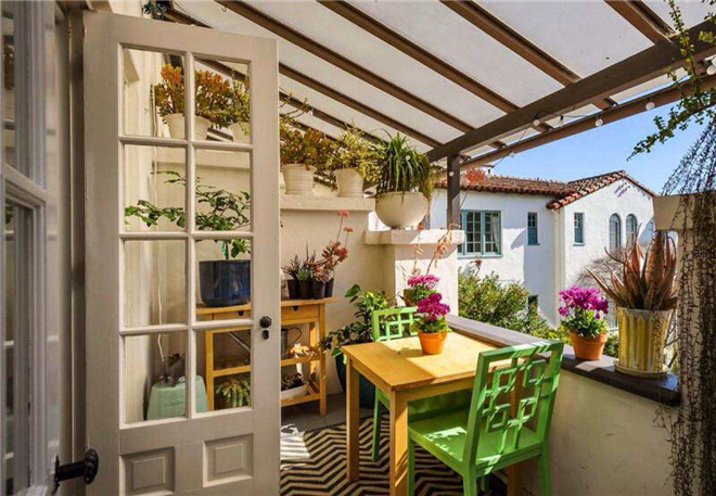 阳台打造成休闲区域,是现代比较流行的一种改造的方法,其中休闲区域的改造也需要更合理的划分布置,搭配休闲桌椅、摆上花花草草,充满了田园自然的风光美感