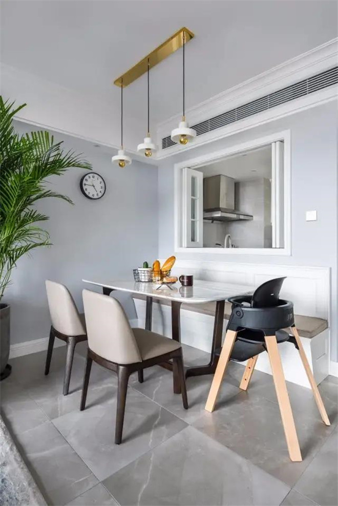 卡座省去了椅子和椅子之间的空档,倘若家中访客较多,卡座的设计可以坐下更多的人,比如原本放两把餐椅的位置现在可以坐下3个人。