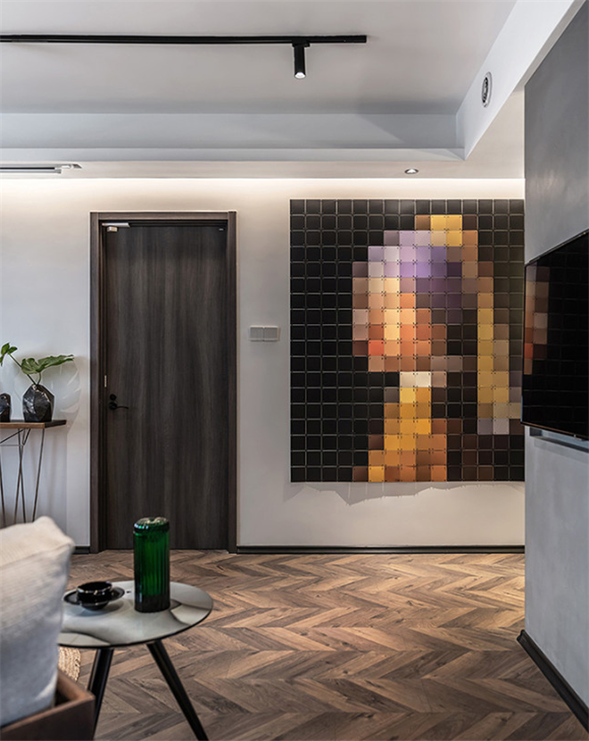 客厅过道中的墙面设计非常独特,近看是就是一面马赛克墙,但是仔细一看,远远的望去,就是一幅经典的油画,意境独到!