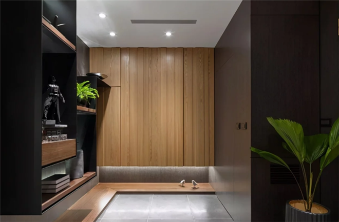 想要入户不摸黑,不妨尝试着在玄关处设置感应灯,小小的设计虽然不起眼,但也挺实用的。目前市面上的有许多插电式或安装电池的感应灯,一旦感应到有人,就会自动亮起灯光,还是挺方便的。